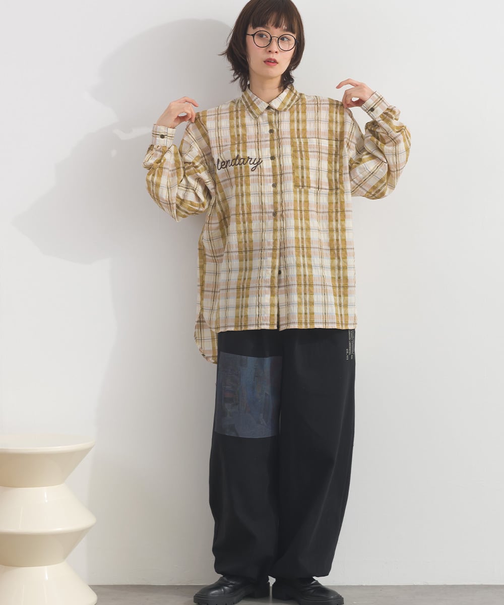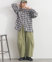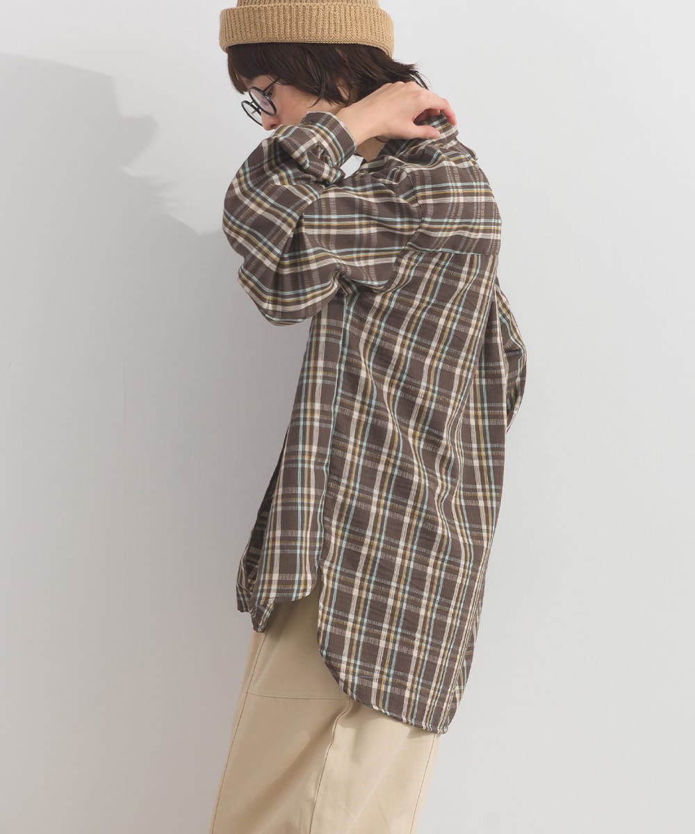 I261049 ワッシャーチェックBIGシャツ / Washed Crinkle Check Big Shirt