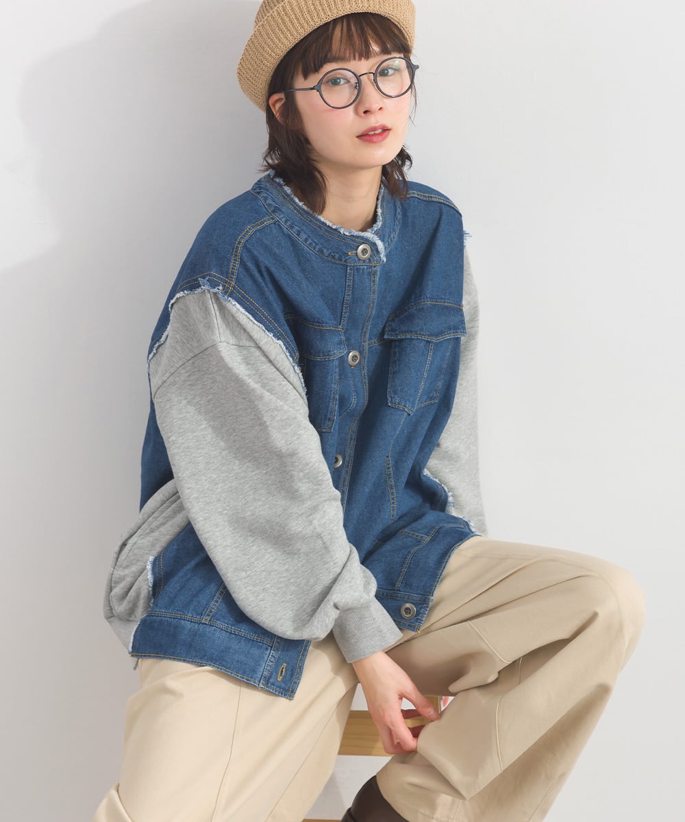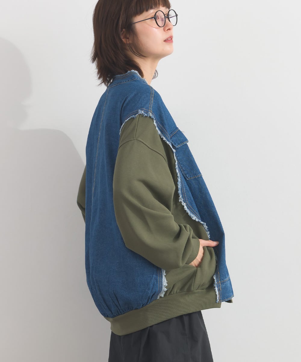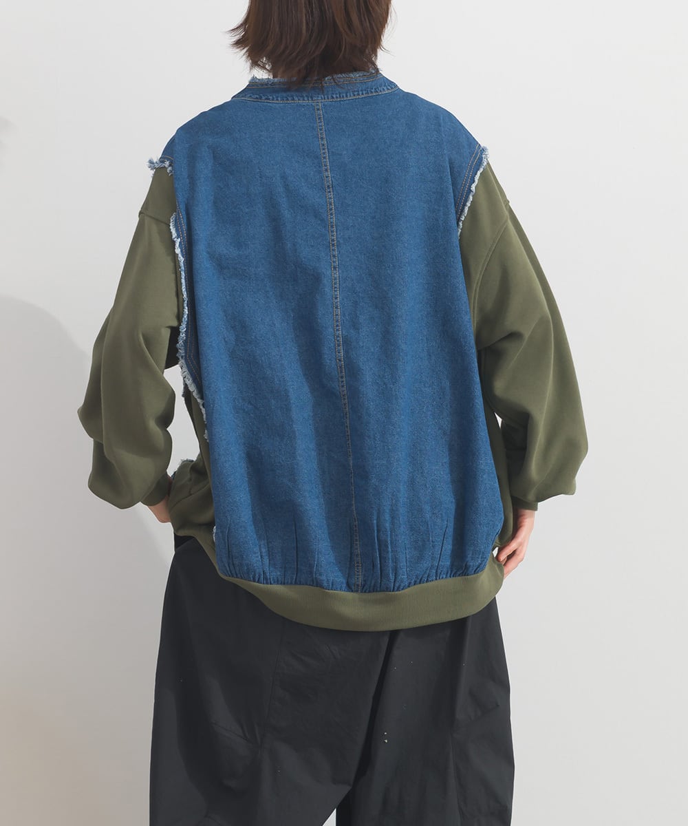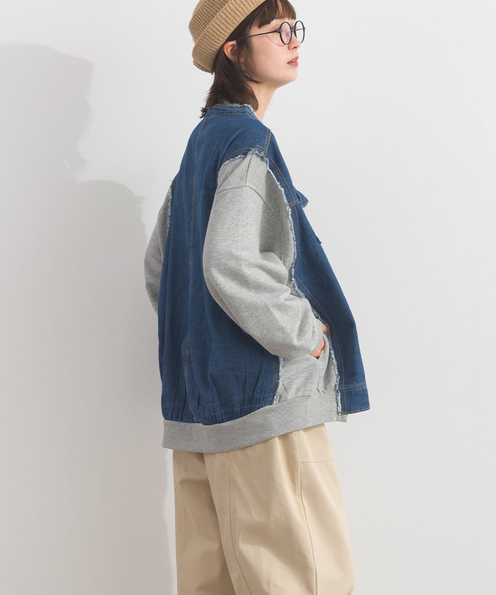 K54028 CT裏毛×8ozデニム異素材リメイク風デニム切替 ブルゾン / CT Sweat × 8oz Denim Mixed-Fabric Remake-Style Crew Cardigan