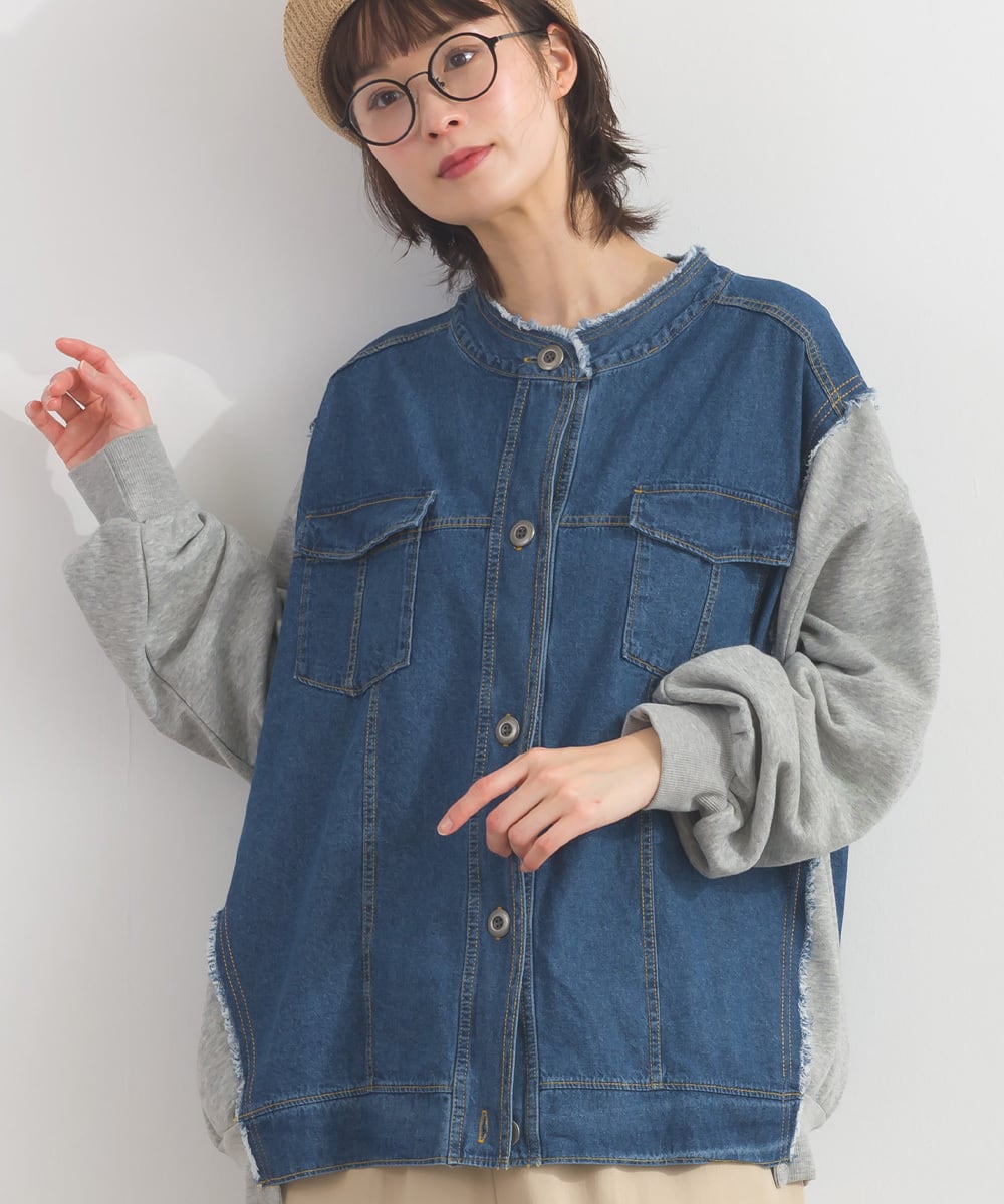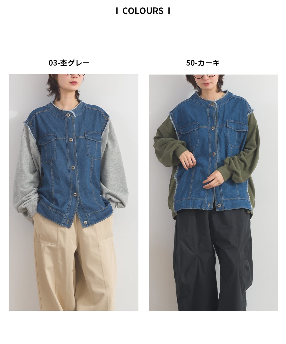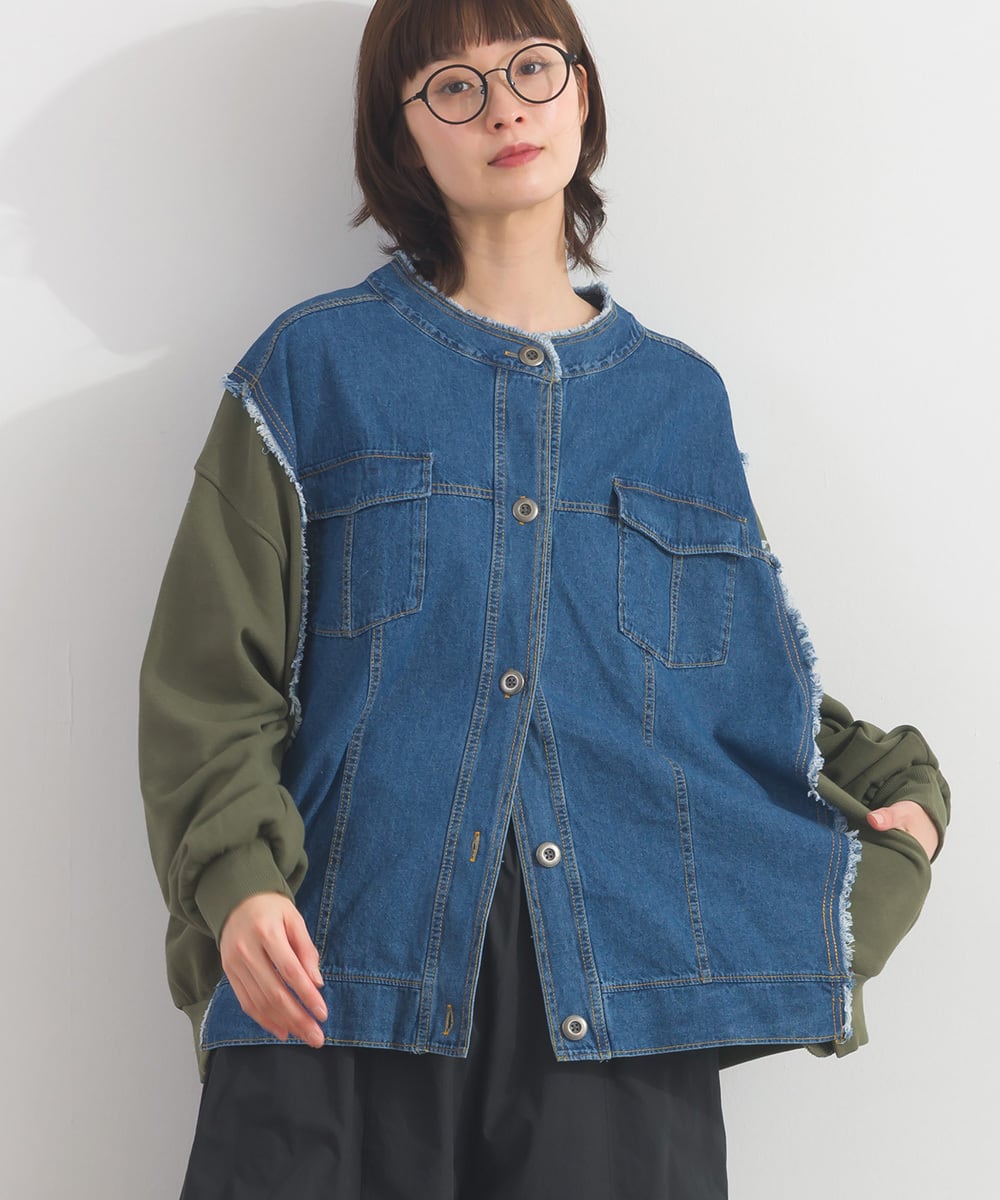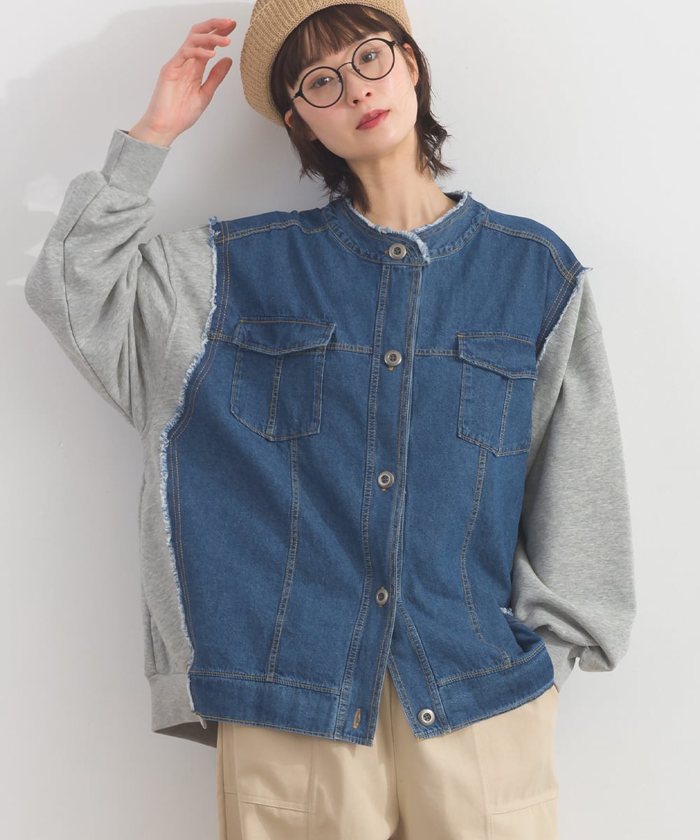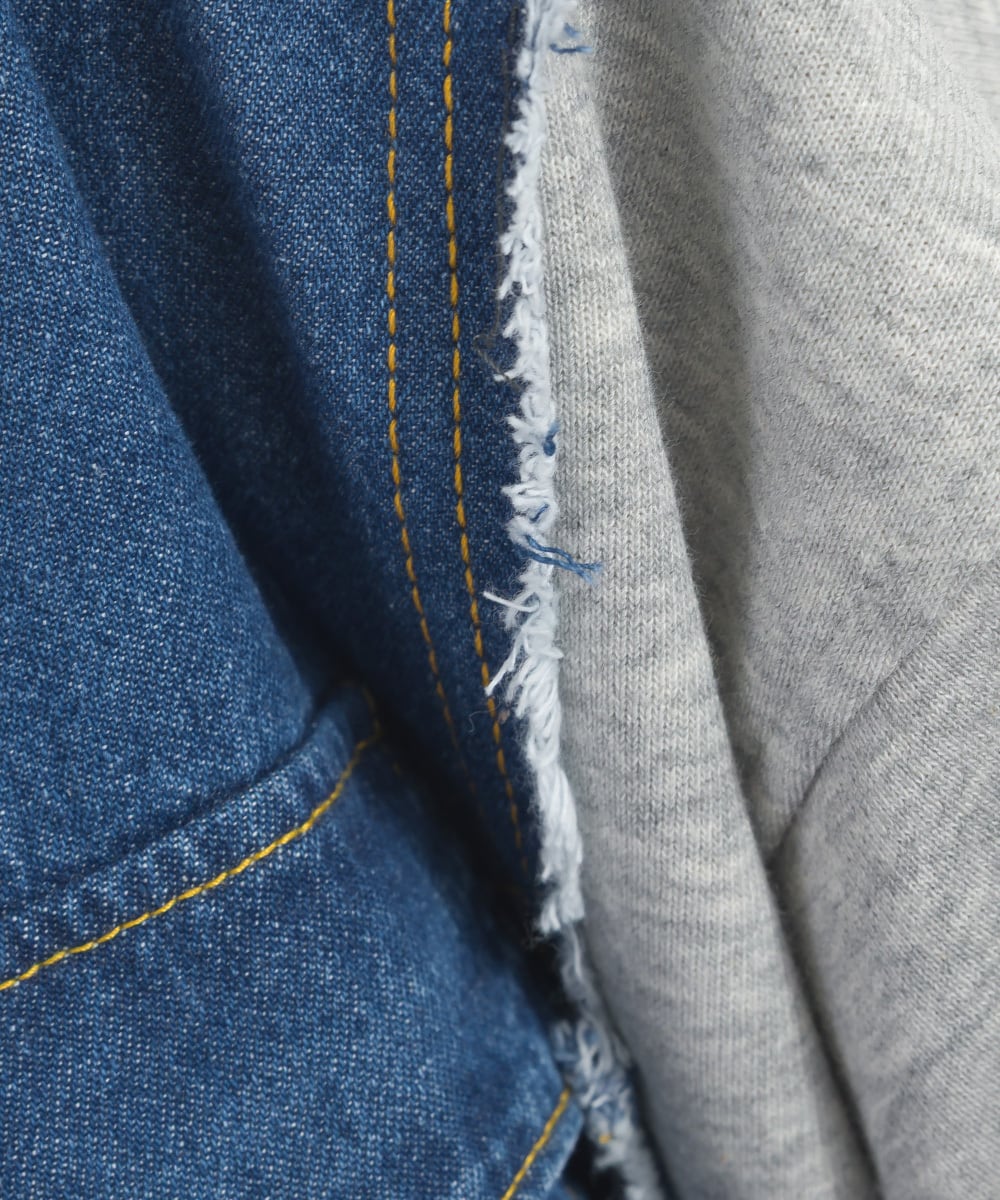 K54028 CT裏毛×8ozデニム異素材リメイク風デニム切替 ブルゾン / CT Sweat × 8oz Denim Mixed-Fabric Remake-Style Crew Cardigan