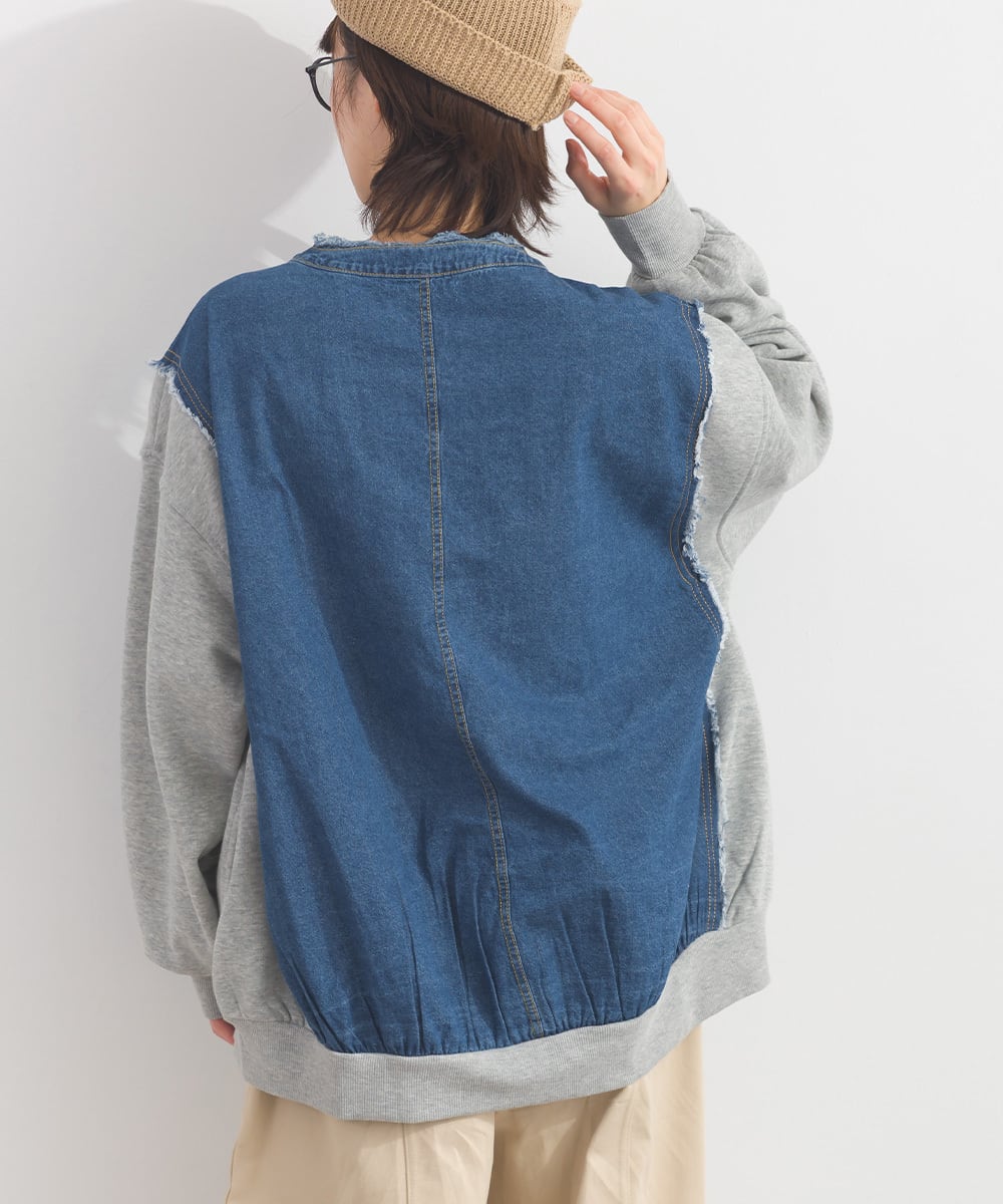 K261009 デニム切替裏毛プルオーバー / Denim-Look Panel Sweat Pullover