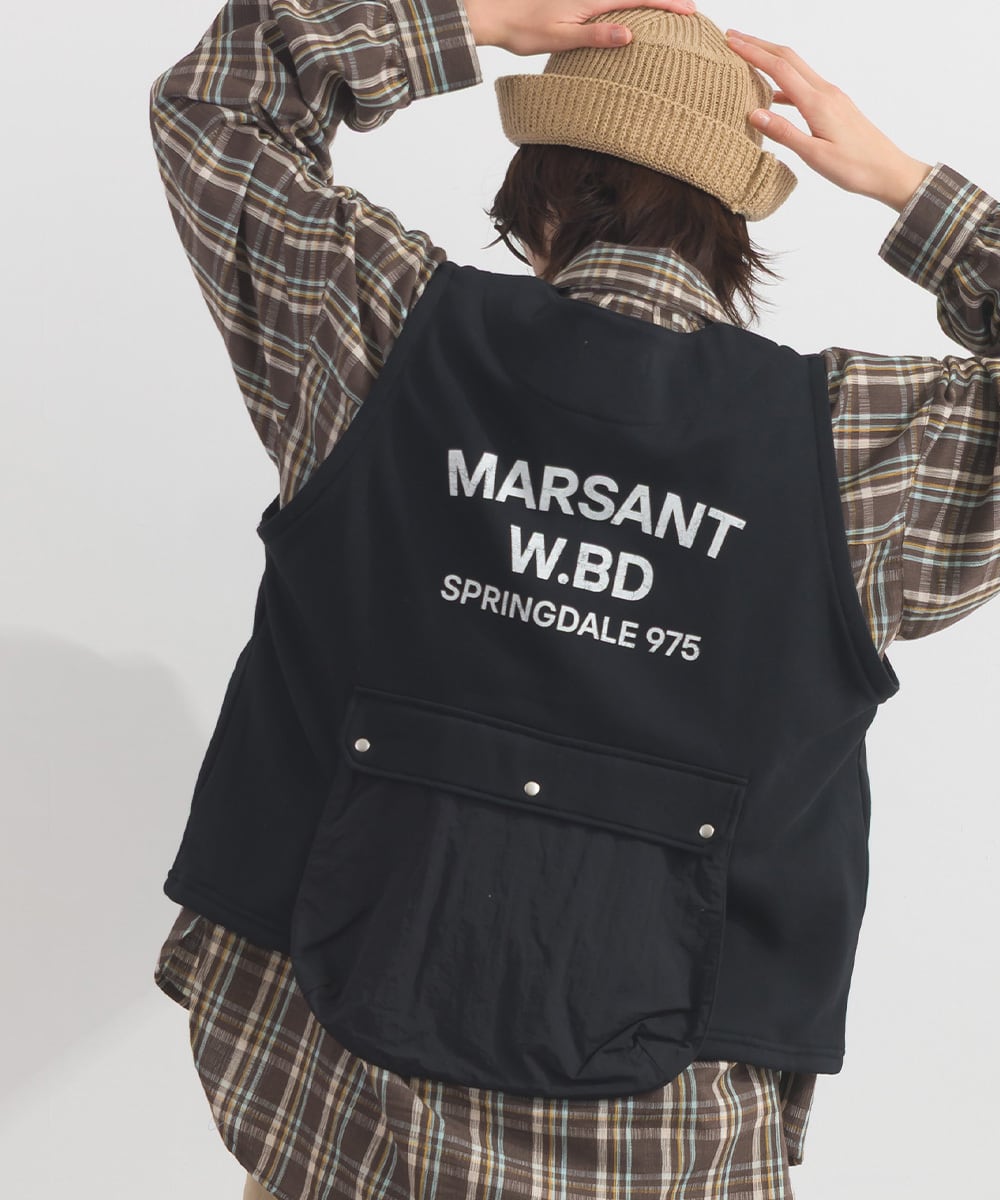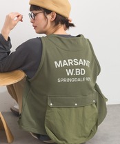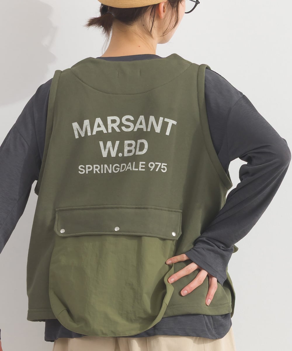 前後に施した大きめのワークポケットが印象的な、ミリタリーライクなデザインベスト。