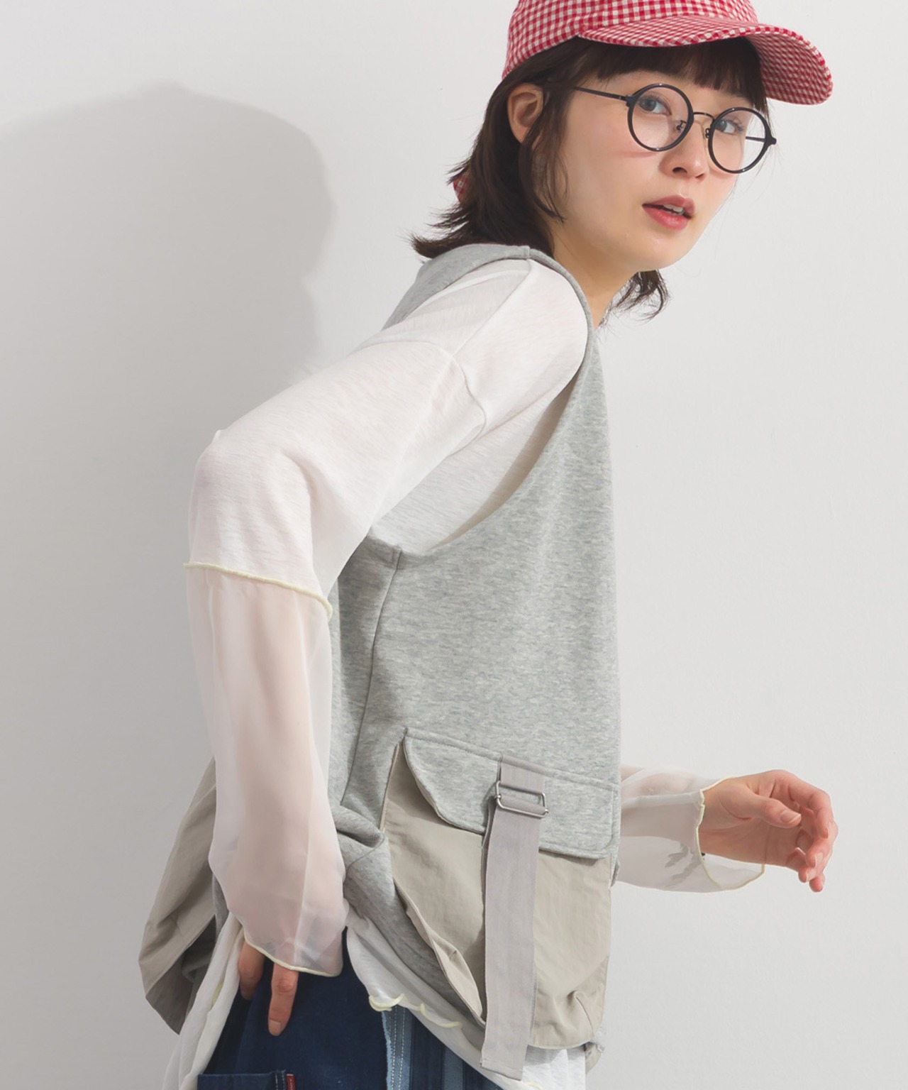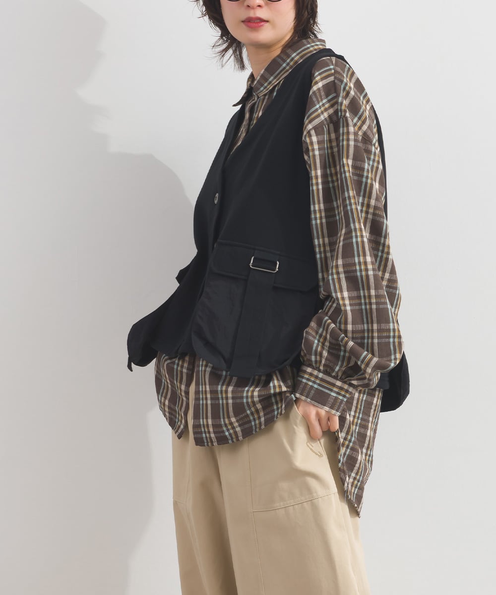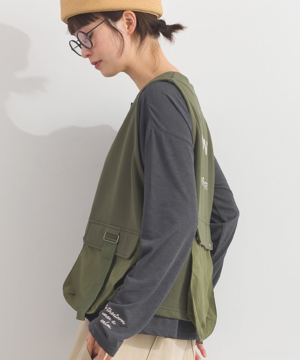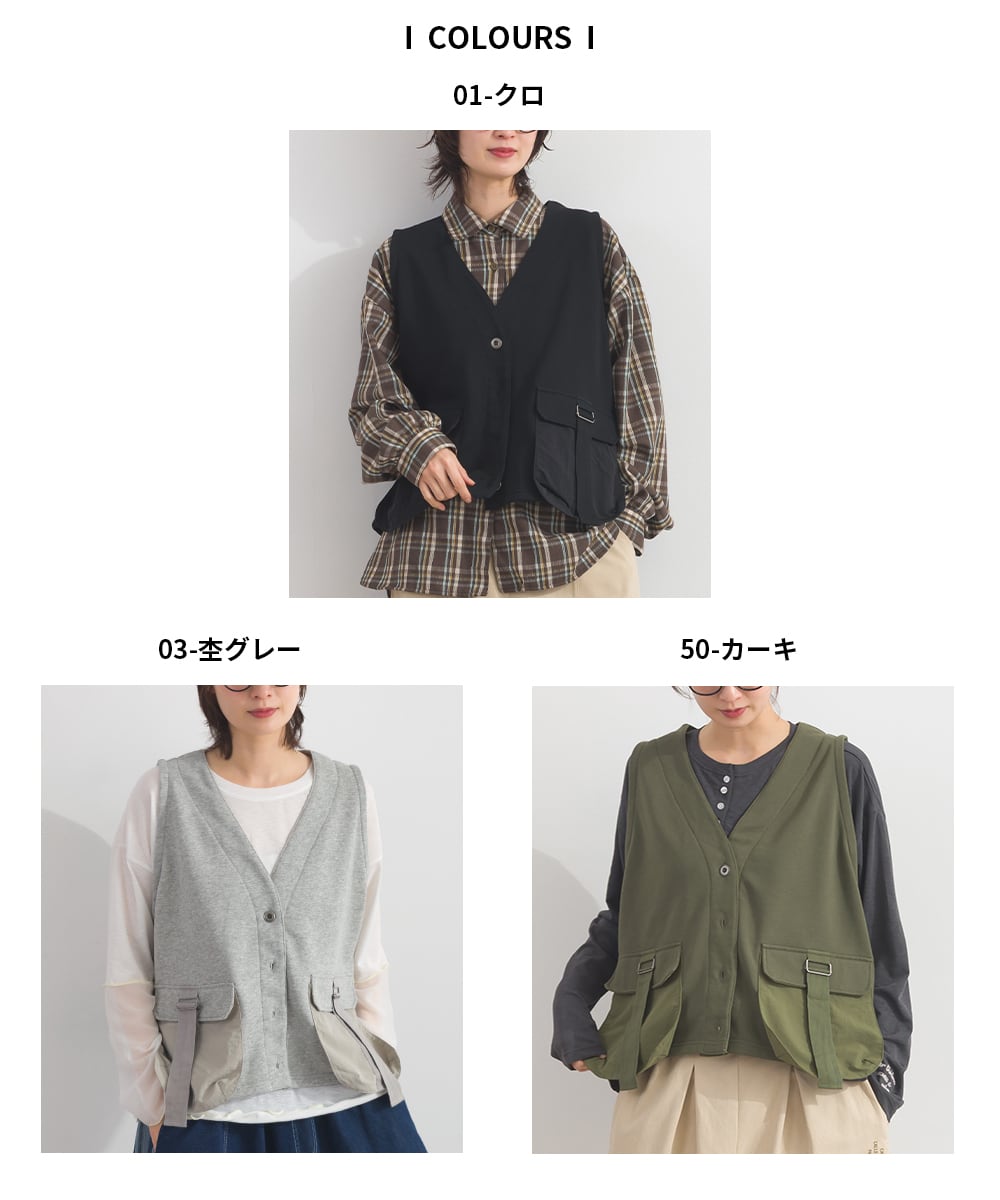 2026SS 2026春夏新作 春夏コーデ オーバーサイズ ワンマイルウエア iriey アイリー カジュアル ナチュラル ミセス ゆったり 体型カバー 新作 ワークベスト レディース 異素材 ベスト ポケット付き レイヤード ミリタリー カジュアル トップス 裏毛 春服 秋服 重ね着 ゆったりシルエット 体型カバー 大人カジュアル ストリート ワークテイスト ノースリーブ 着回し 人気アイテム