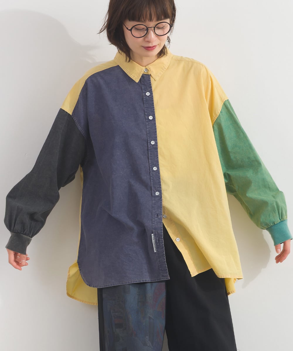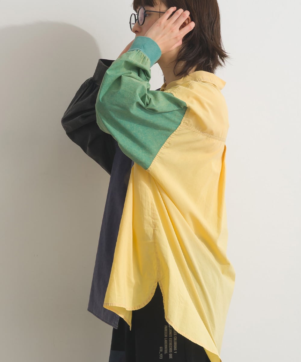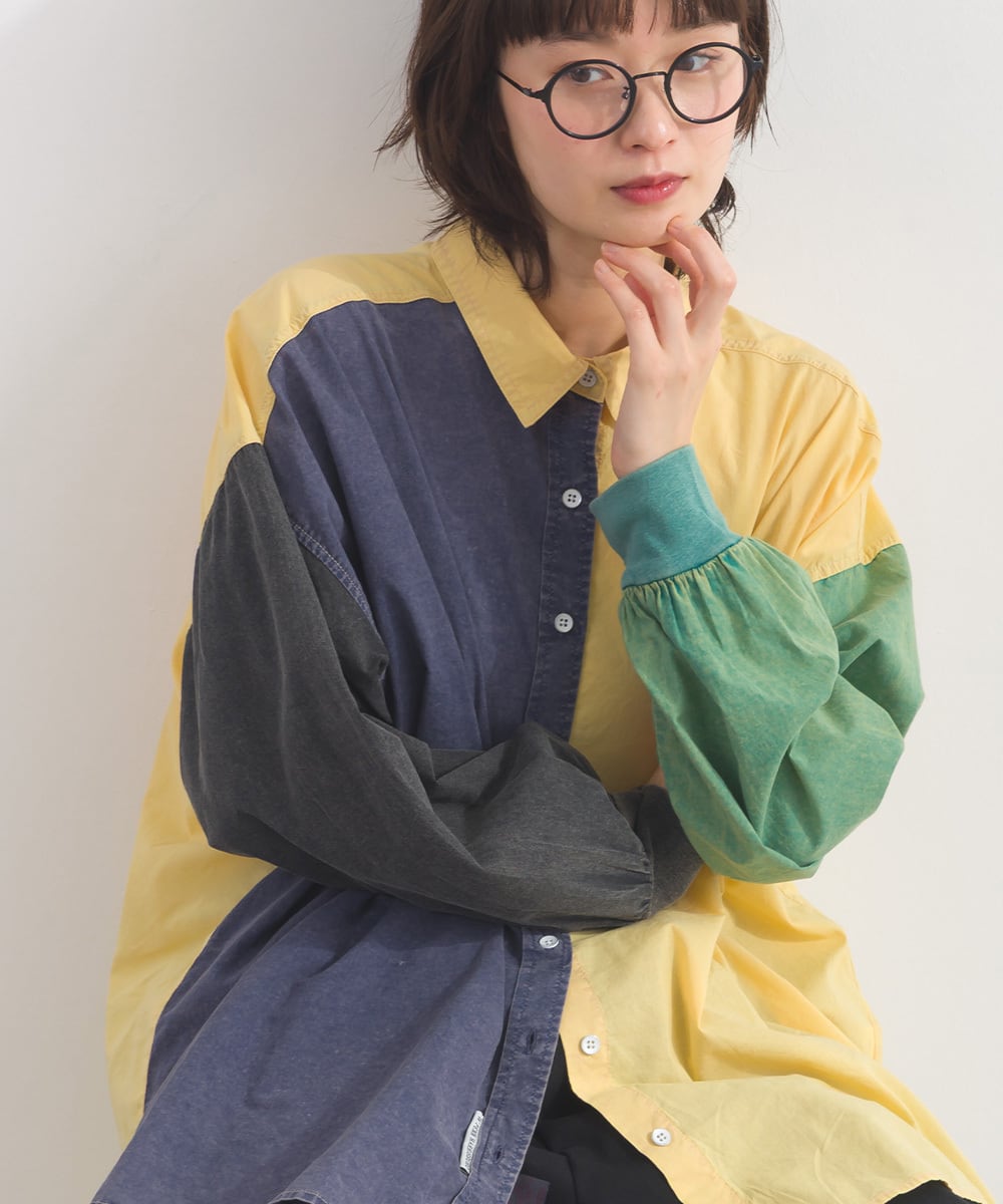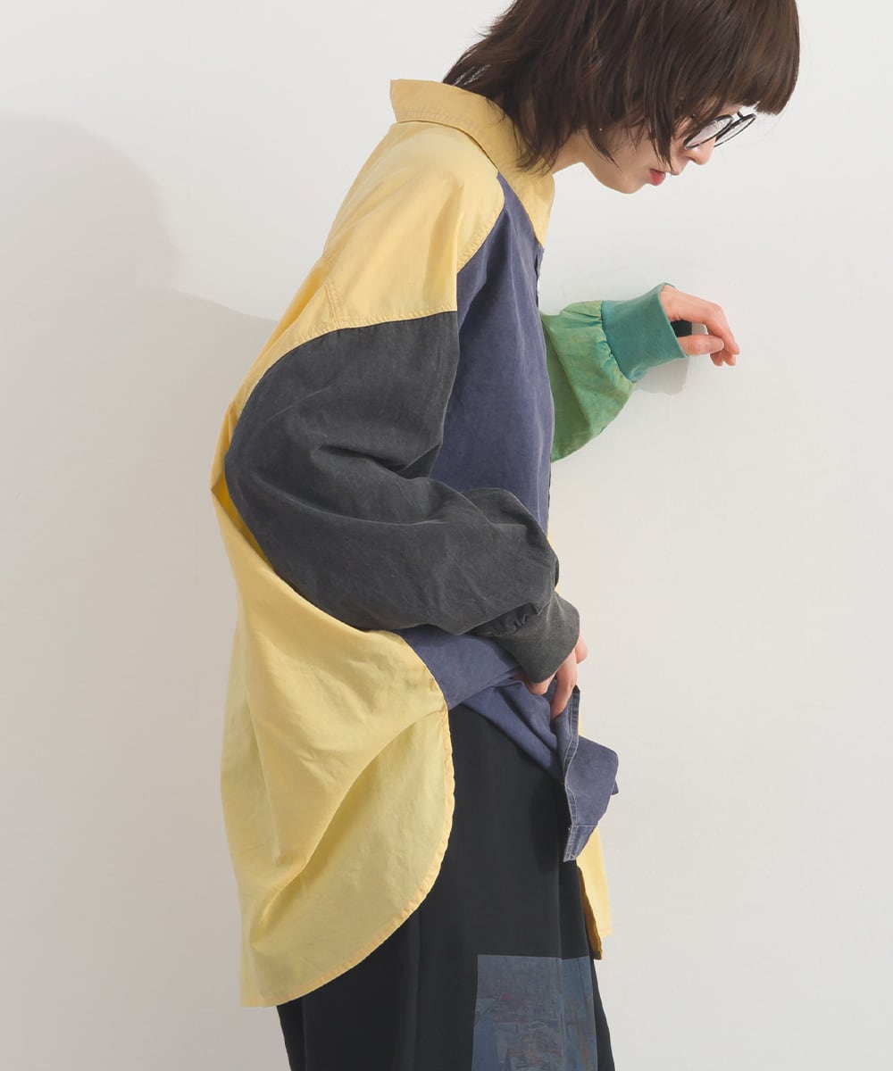 大胆な配色切替とビッグシルエットが目を惹くデザインシャツ。