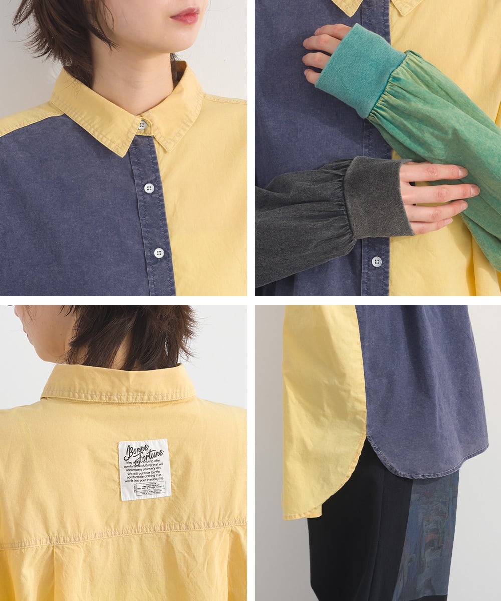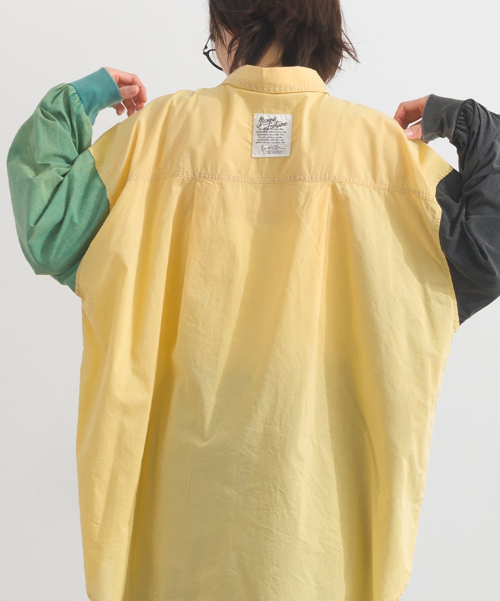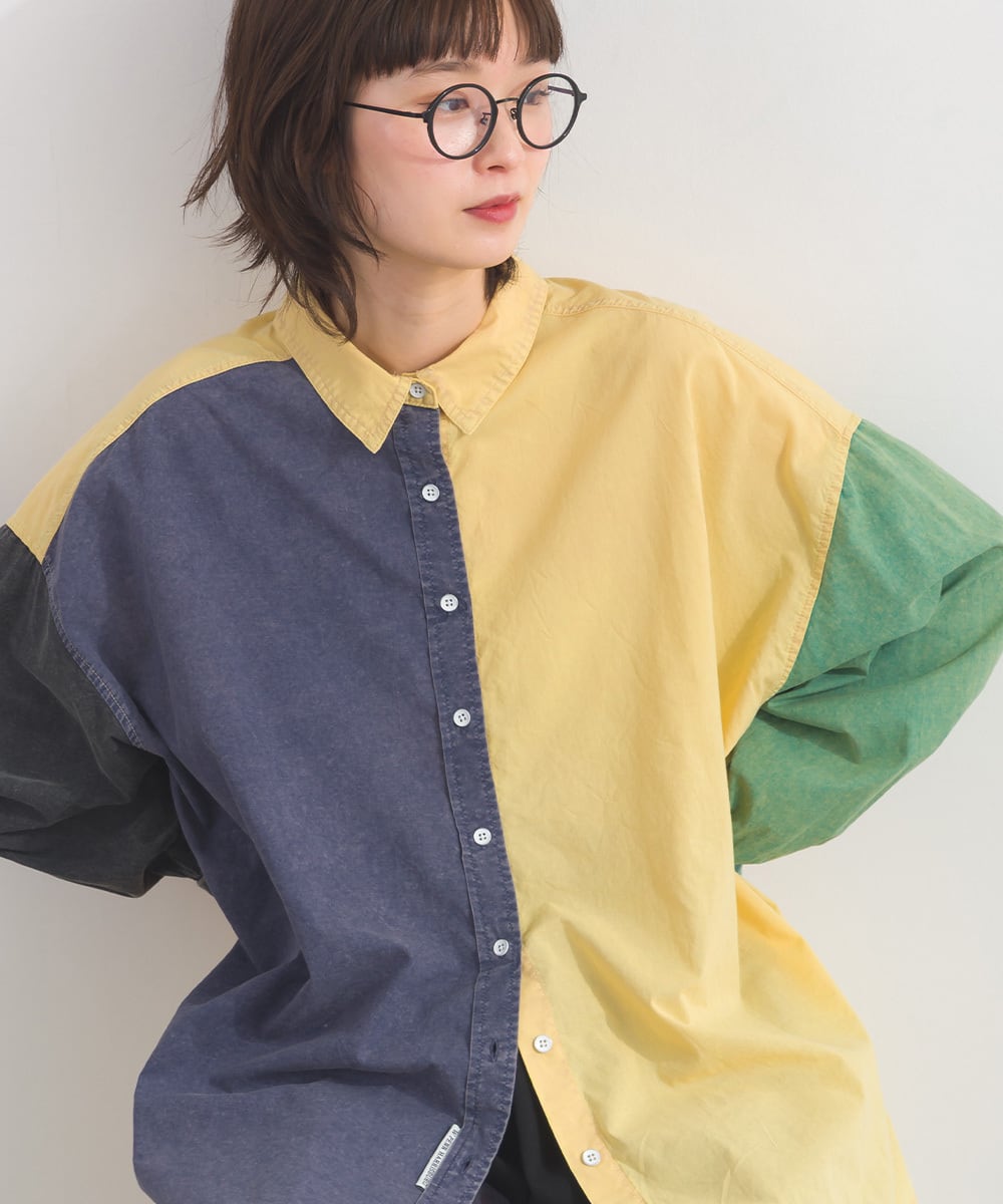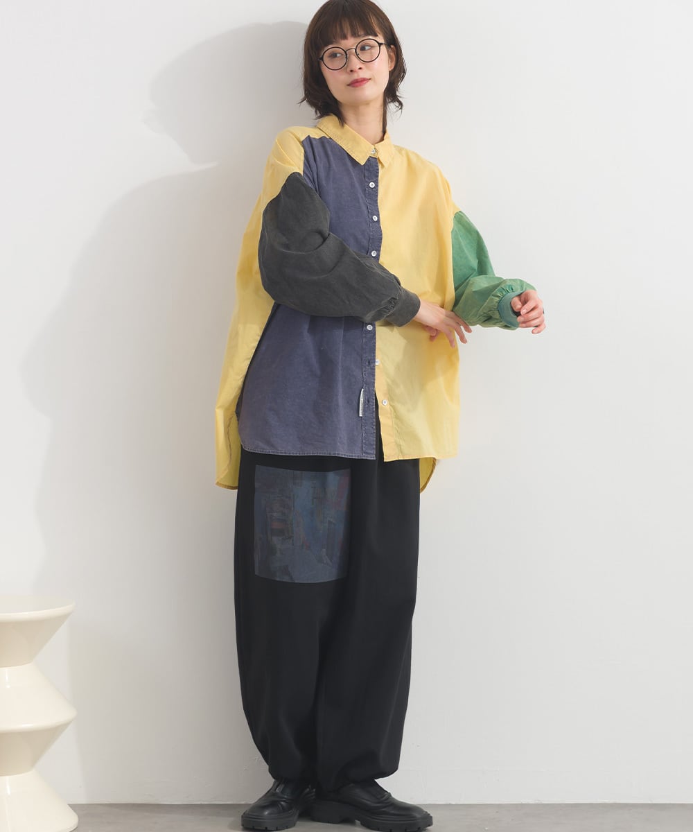 大胆な配色切替とビッグシルエットが目を惹くデザインシャツ。