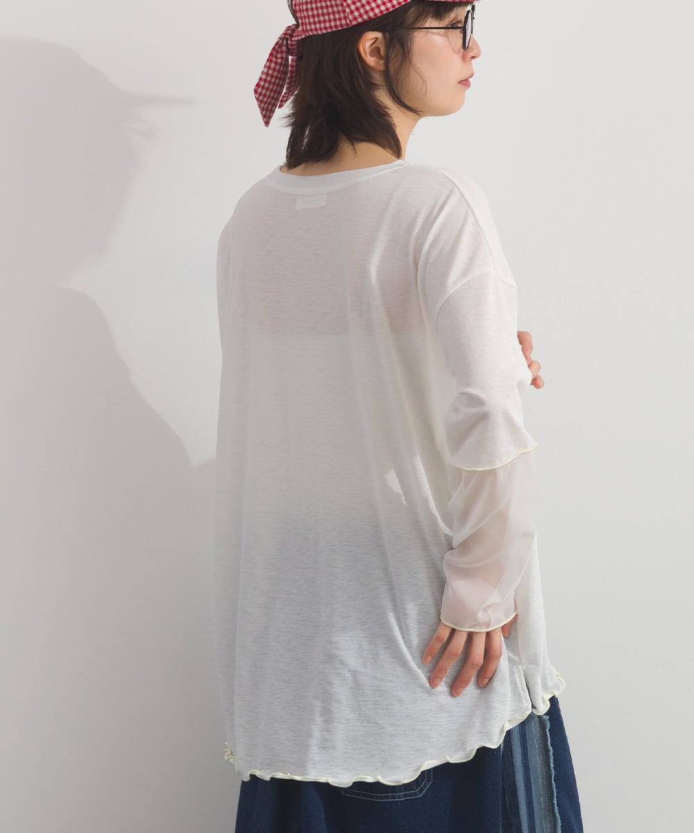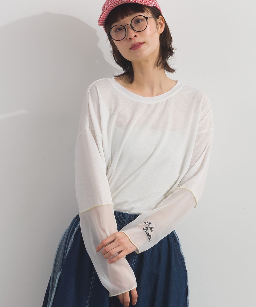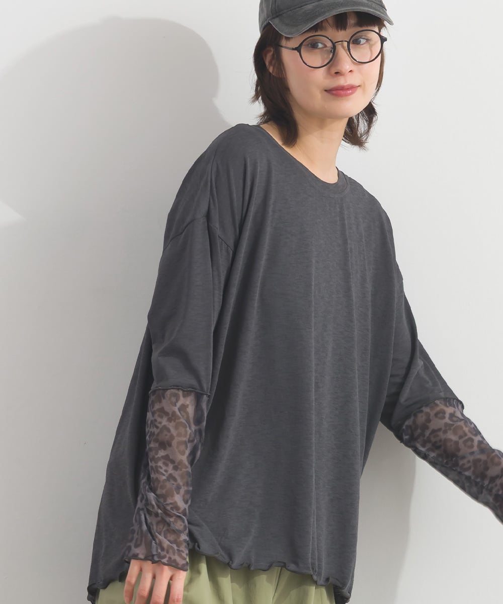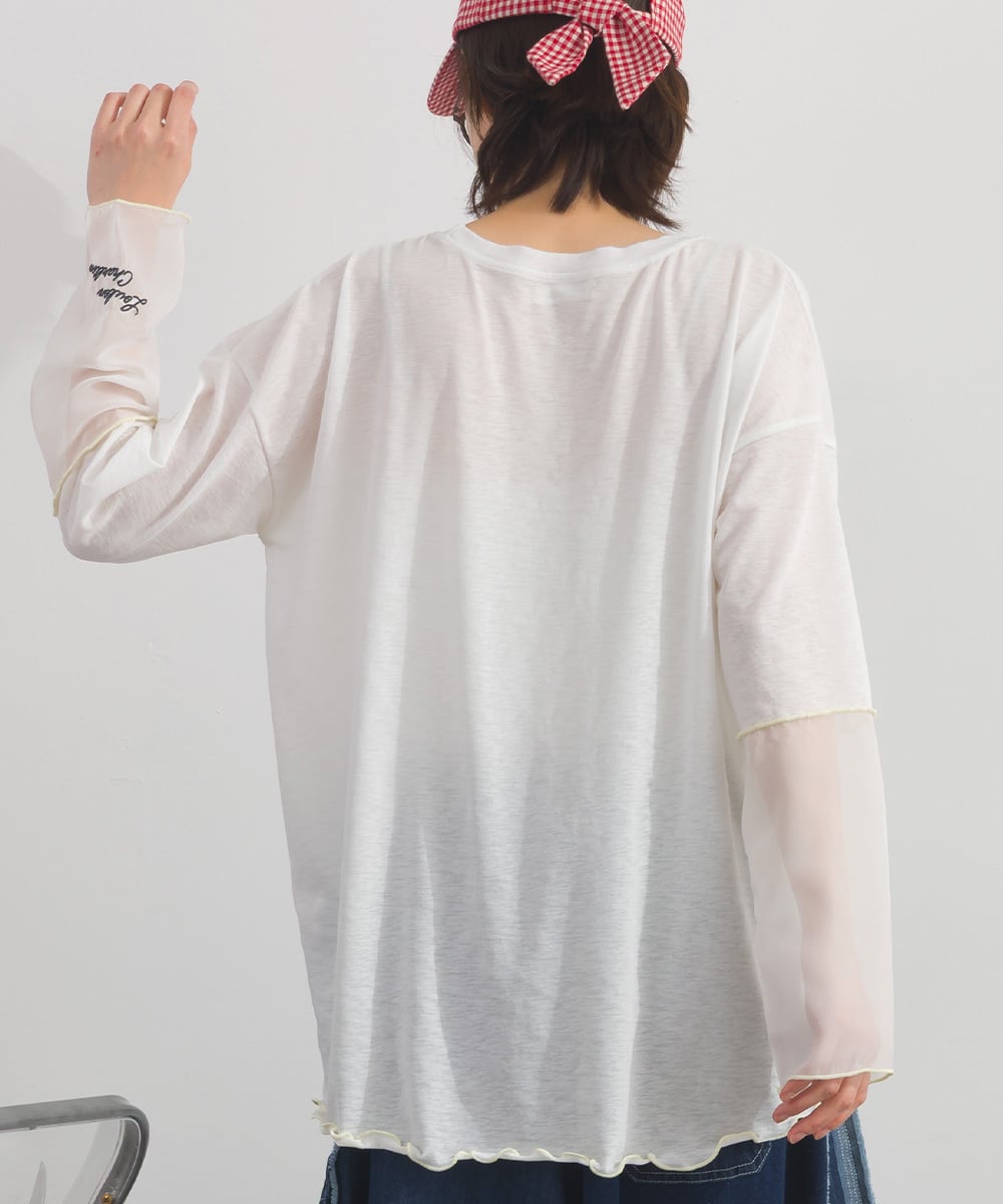A261047 シアー袖切替長袖Tシャツ / Sheer Sleeve Panel Long-Sleeve T-Shirt (残りわずか)