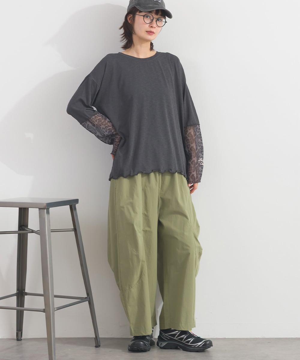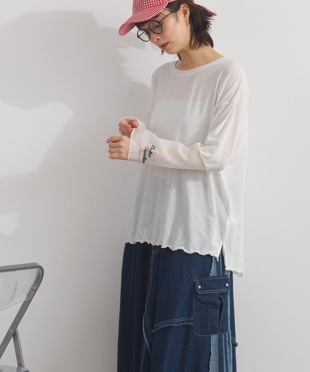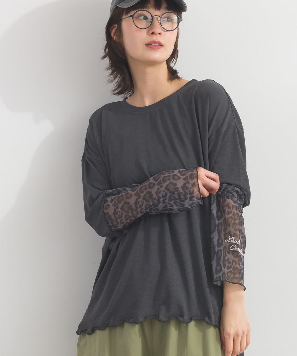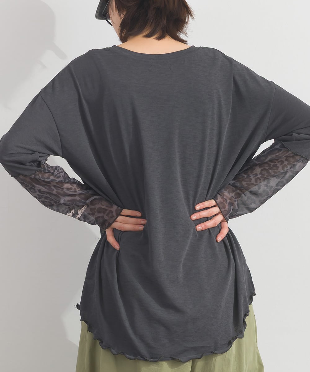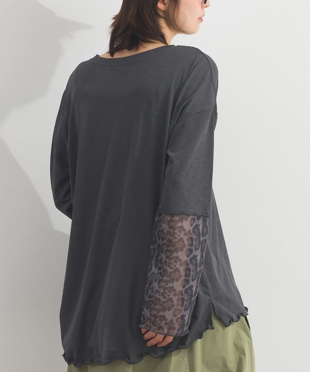A261047 シアー袖切替長袖Tシャツ / Sheer Sleeve Panel Long-Sleeve T-Shirt (残りわずか)