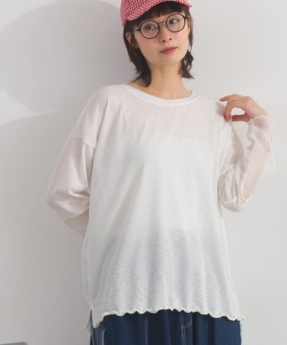 2026春夏新作 2026新作 春夏 オーバーサイズ ワンマイルウエア iriey アイリー ナチュラル カジュアル 体型カバー クーラー対策 冷房対策 羽織 シアー シアーカーデ カーデ ヴィンテージ 人気 袖シアー ロンT スラブ天竺 異素材切替 レディース 長袖 カットソー 春服 夏服 透け感 レイヤード トップス 体型カバー ゆったりシルエット 大人カジュアル ナチュラル ストリート 着回し 無地 カラー展開