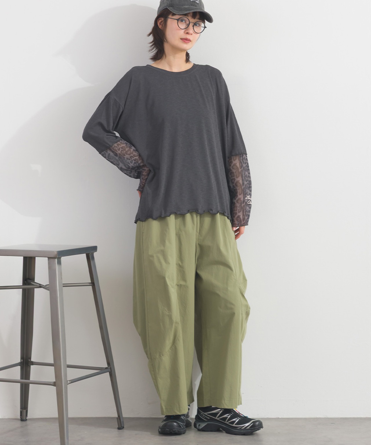 ベストやサロペットのインナーとしても袖の透け感が映え、季節感のあるコーディネートが完成します。