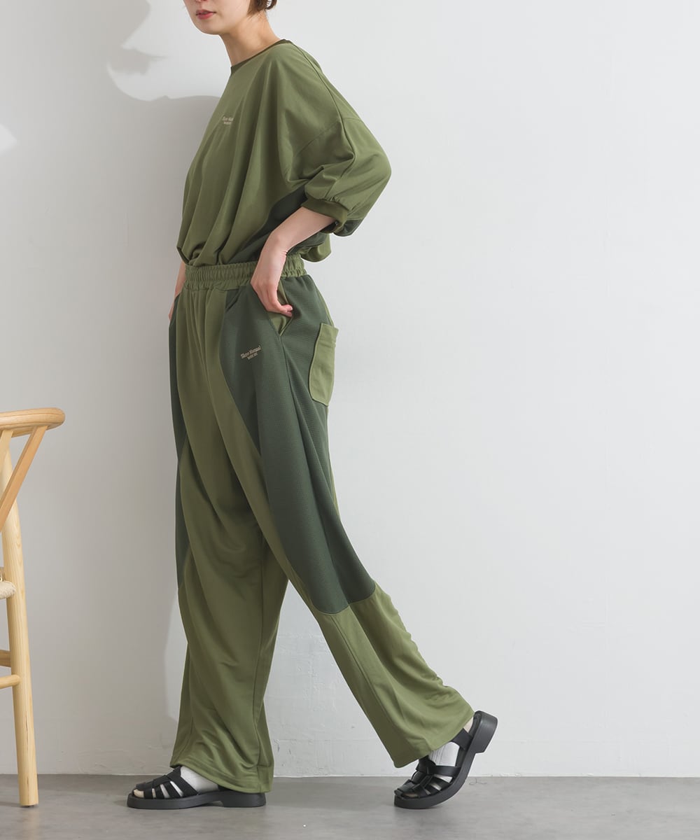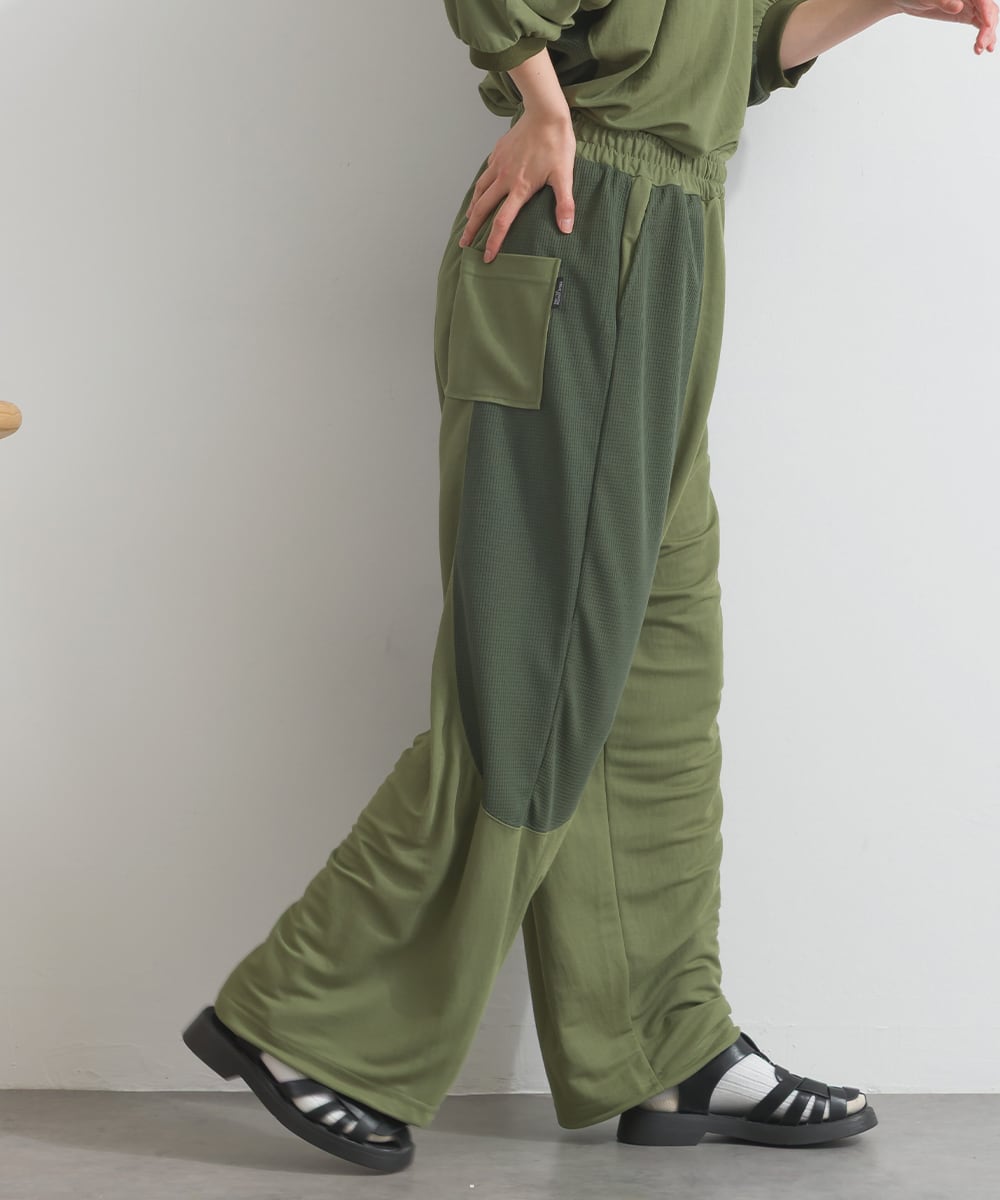 A261051 異素材切替 接触冷感ドロストパンツ / Mixed Material Cool Touch Drawstring Pants