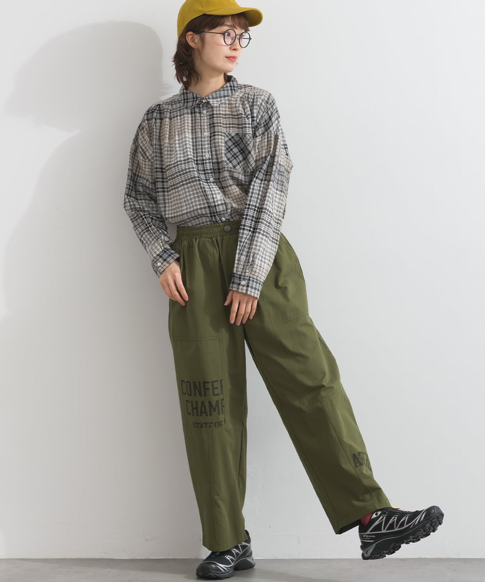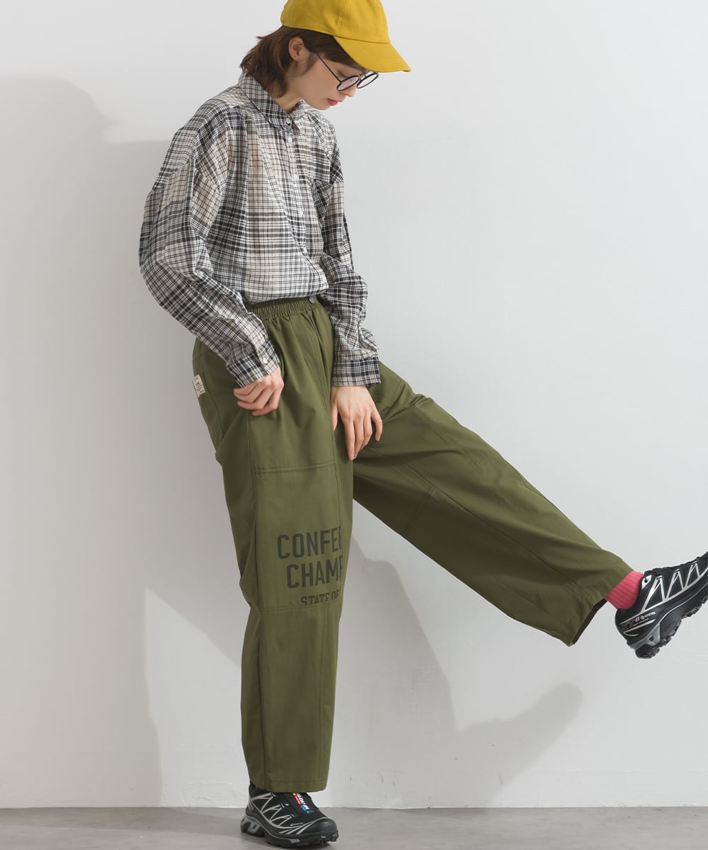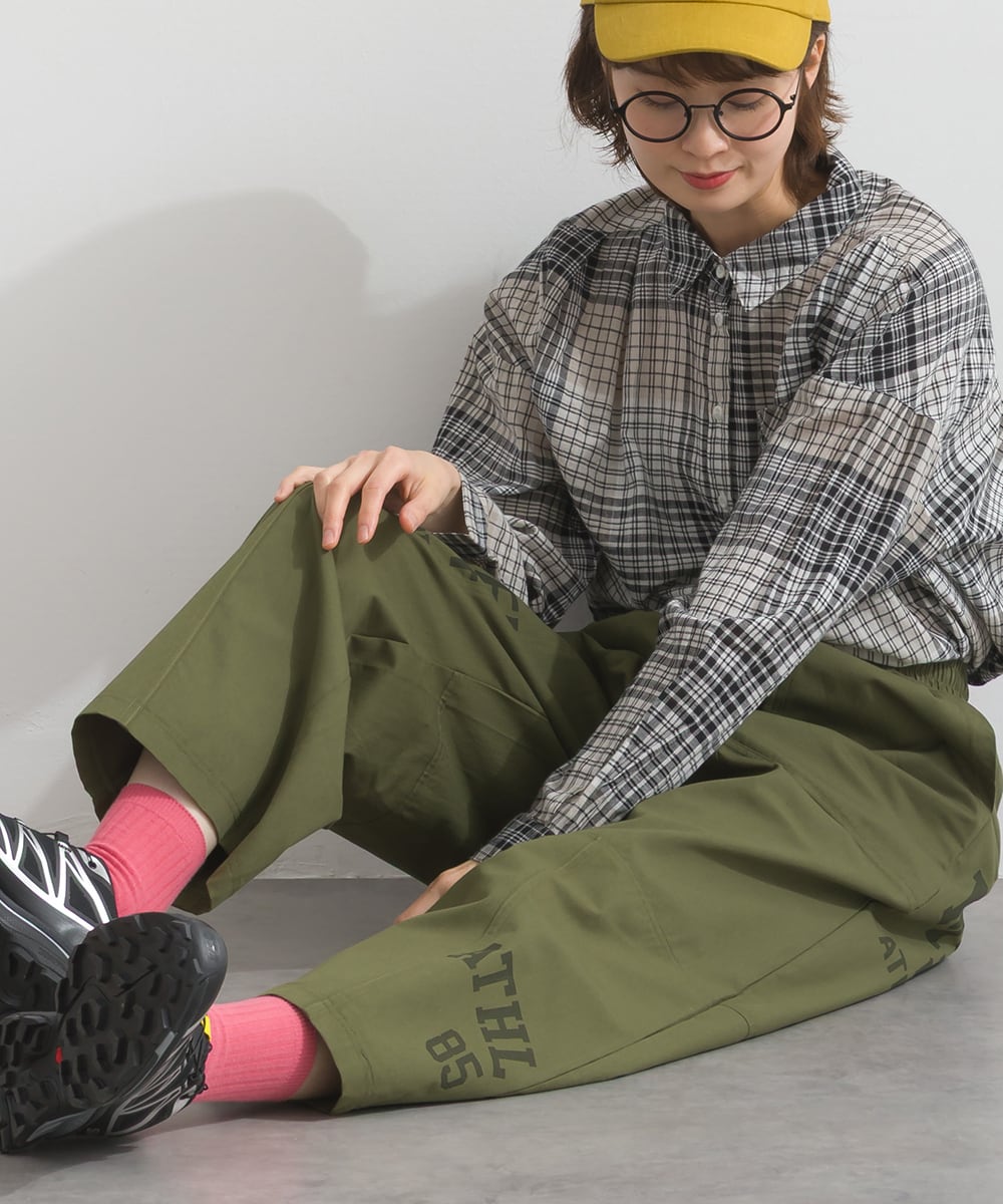 2026SS 2026春夏新作 春夏コーデ オーバーサイズ ワンマイルウエア iriey アイリー カジュアル ナチュラル ミセス ゆったり 体型カバー ゆったりシルエット ワークパンツ レディース ツイル プリントパンツ ロゴ ボトムス ウエストゴム カジュアル ストリート ミリタリー風 体型カバー 春夏 秋 ゆったりシルエット 着回し 黒 ベージュ カーキ 大人カジュアル イージーパンツ 韓国ファッション ワンマイルウェア 人気パンツ