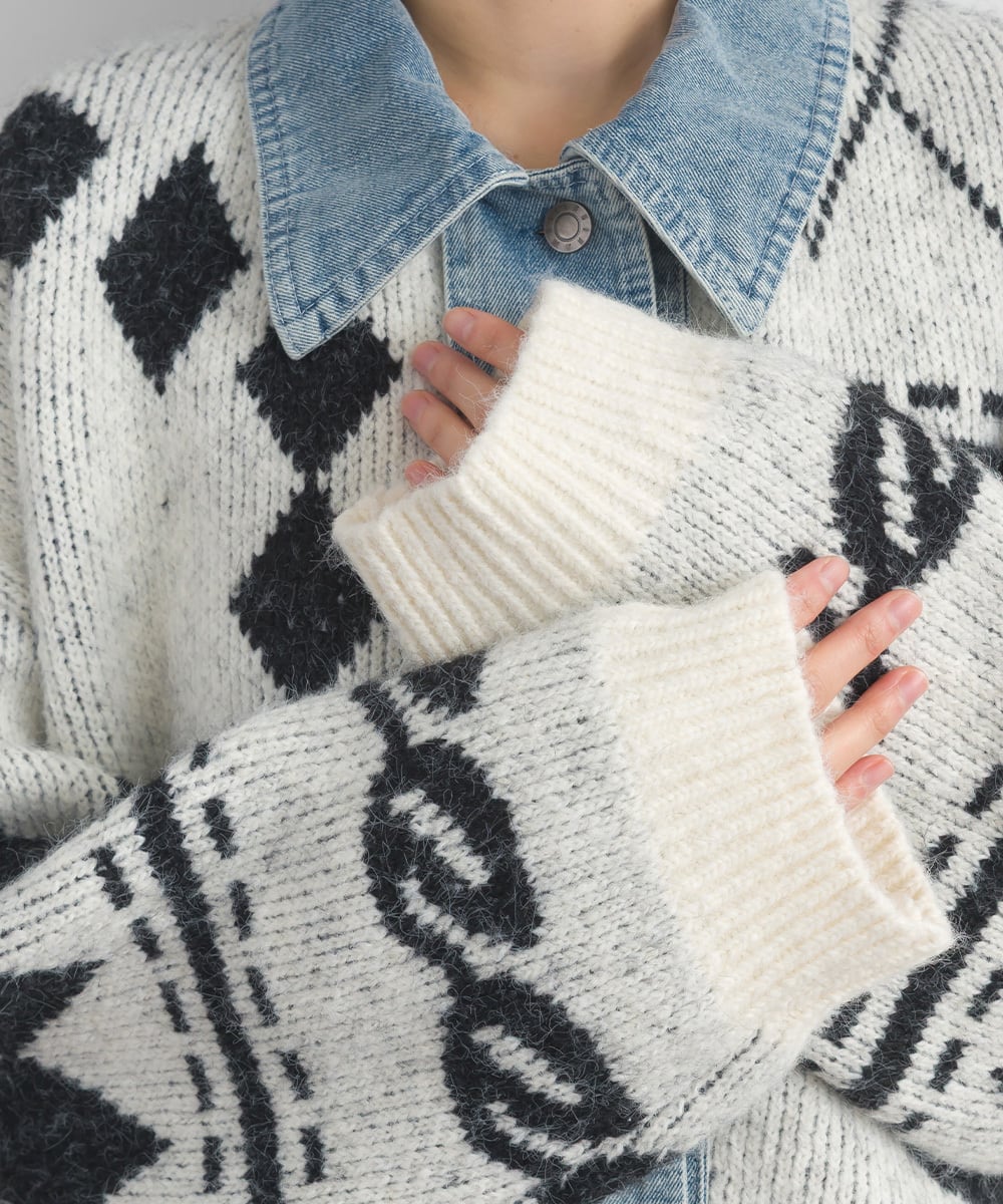 D261135 デニム切り替えカウチン風カーディガン / Denim-Panel Cowichan-Style Cardigan