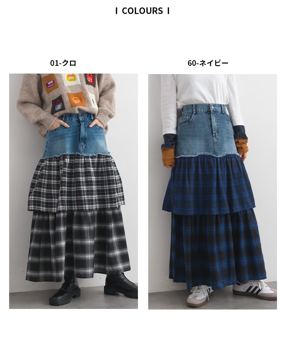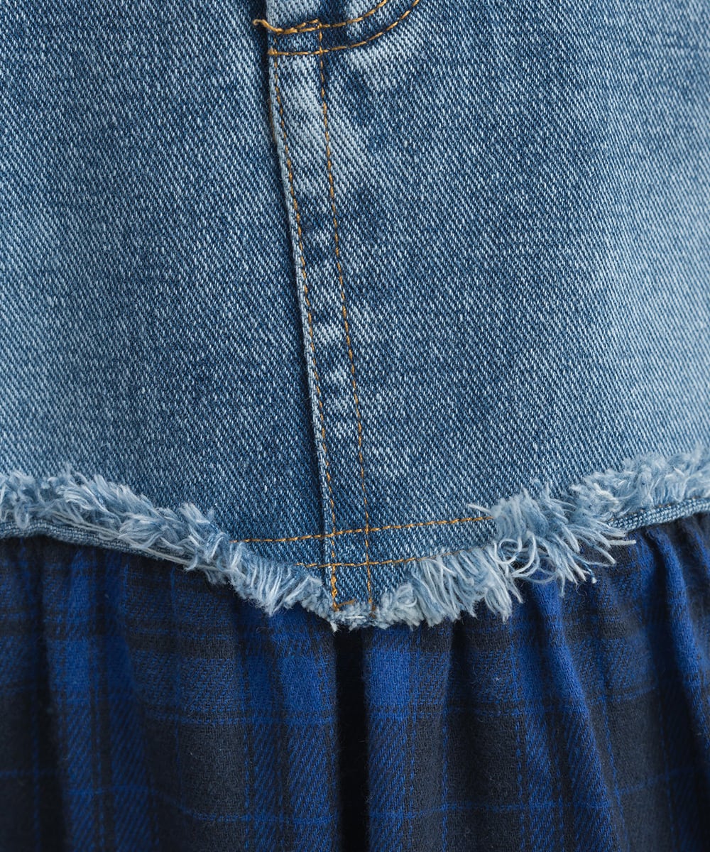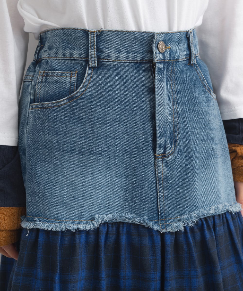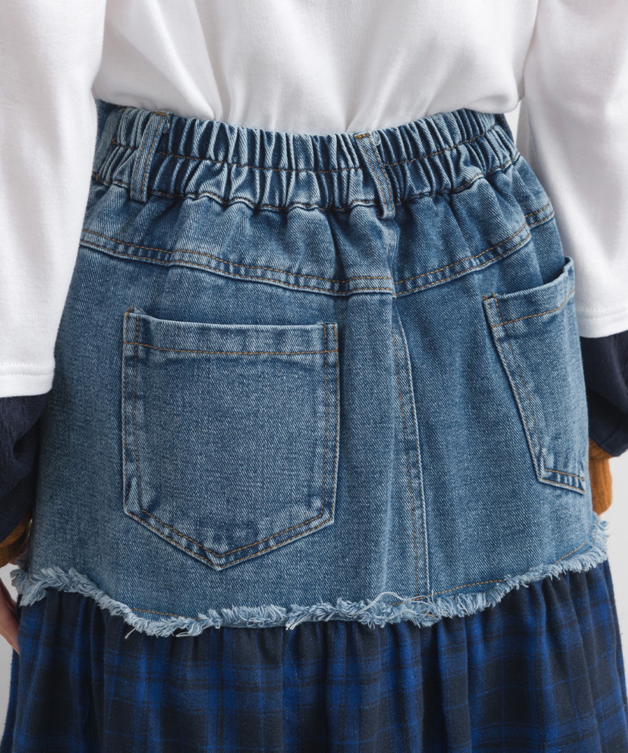 D261138 デニム×チェックティアードスカート / Denim & Check Tiered Skirt