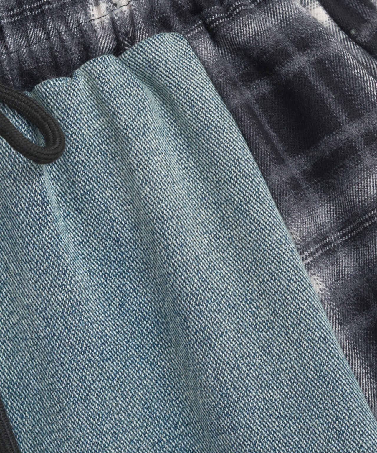 D261140 チェック切替デニムスカート / Check Panel Denim Skirt