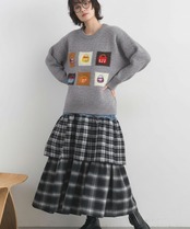 ジャカードで丁寧に編み立てられたカラーパネルがアクセントとなり、シンプルなニットとは一味違う印象に。