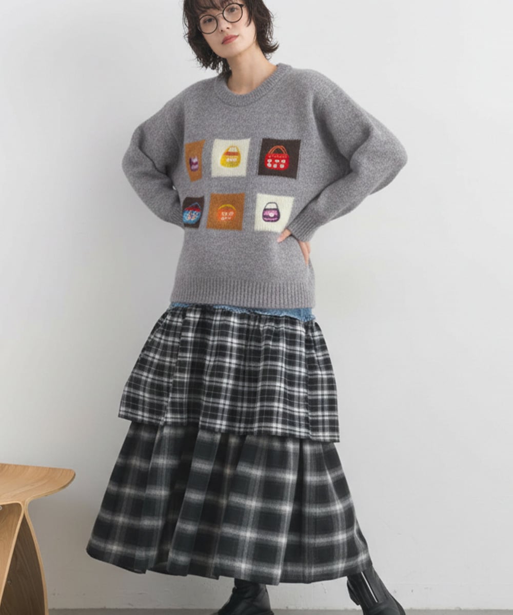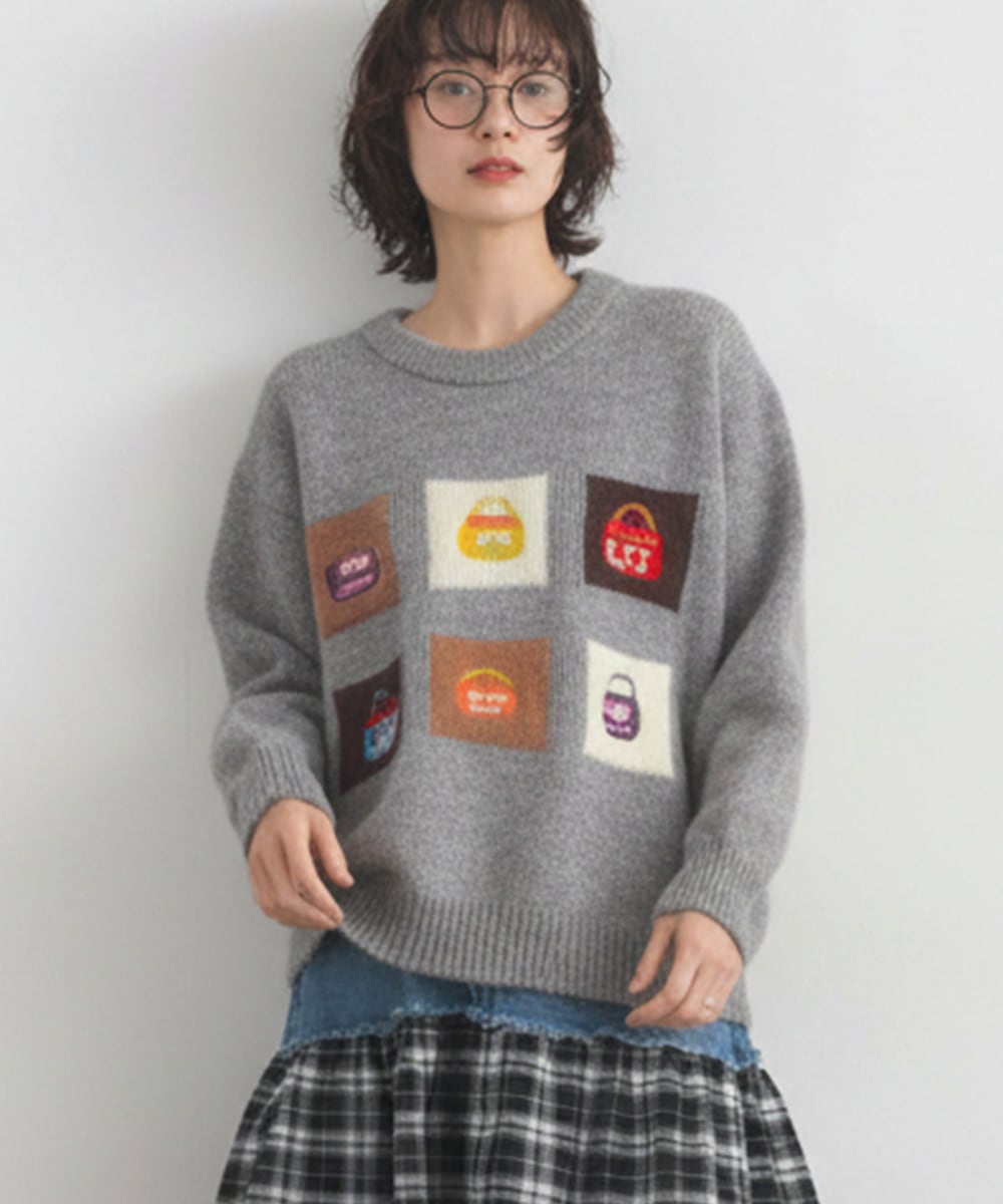カラフルな6つのジャカードパネルがフロントに並んだ、遊び心のあるデザインニットプルオーバー。