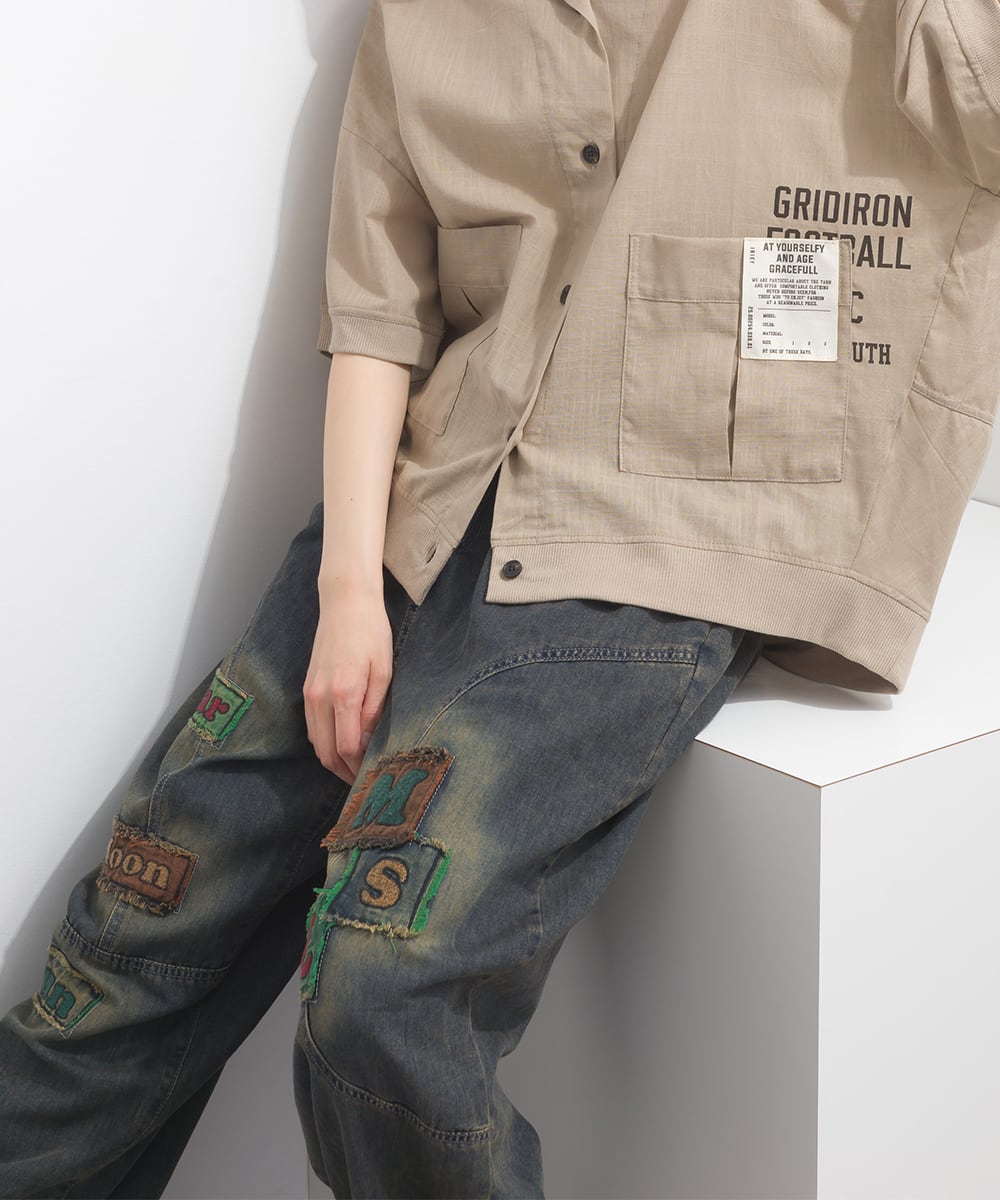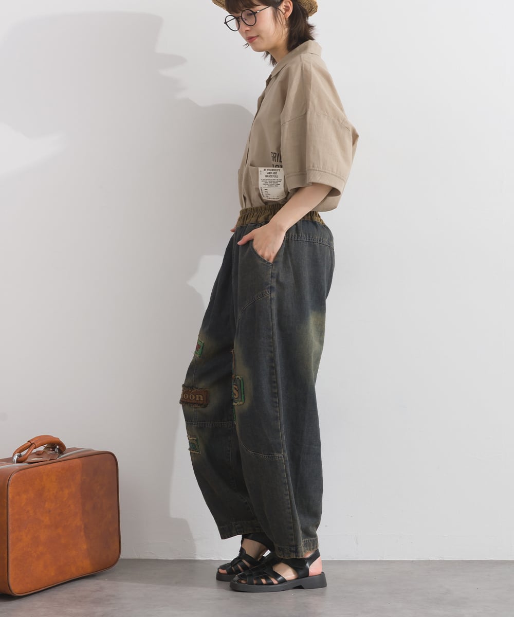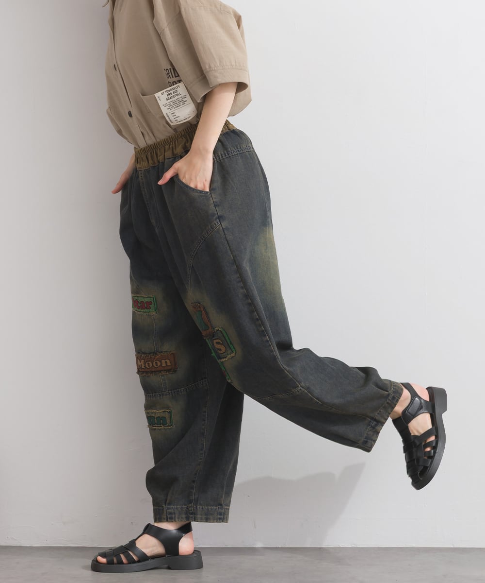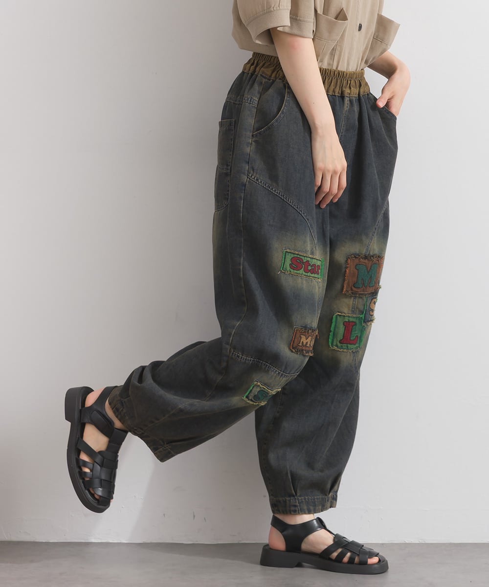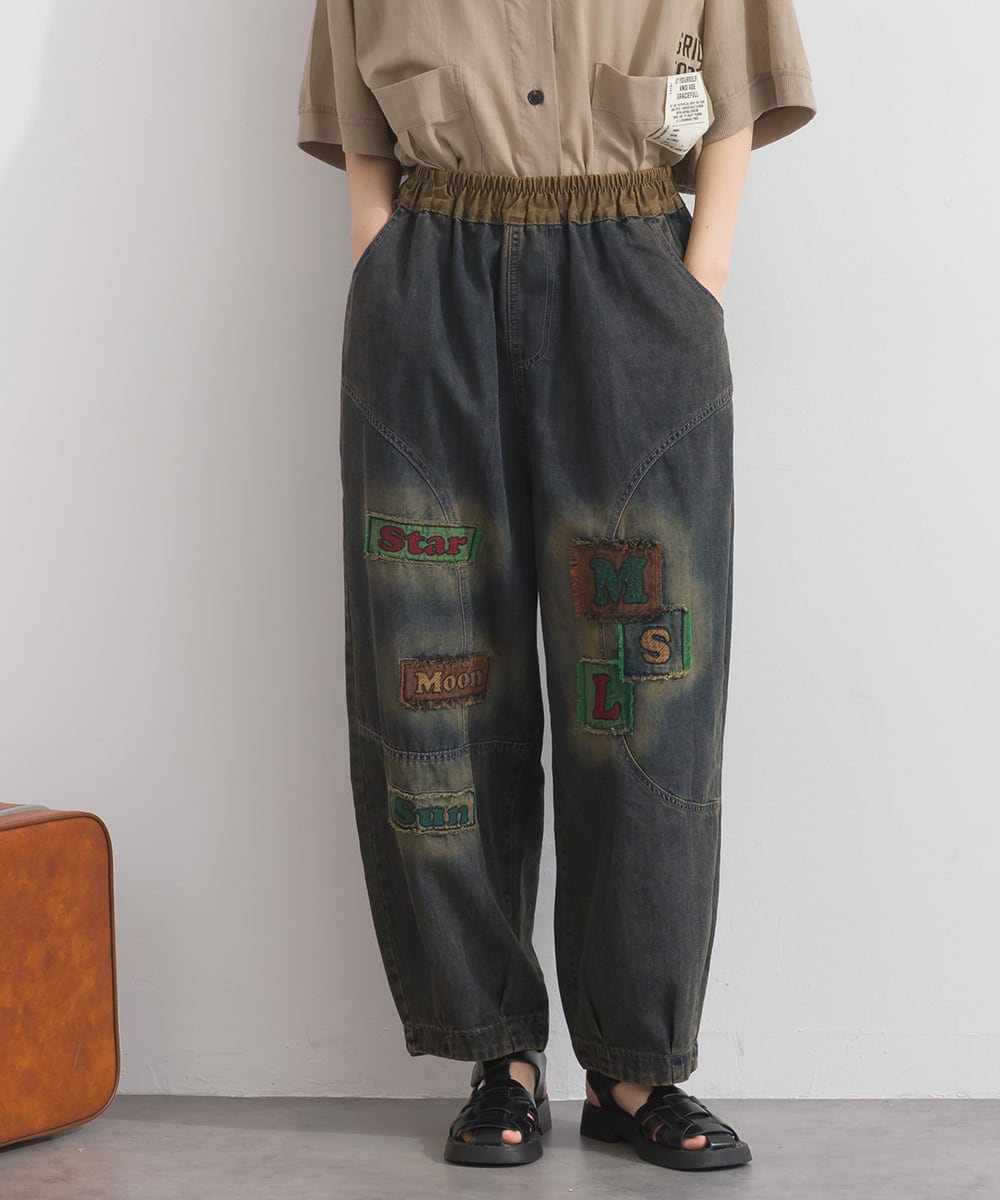 D262059 【体型カバーデニムシリーズ】 パッチワークロゴデニムパンツ / Patchwork Logo Denim Pants