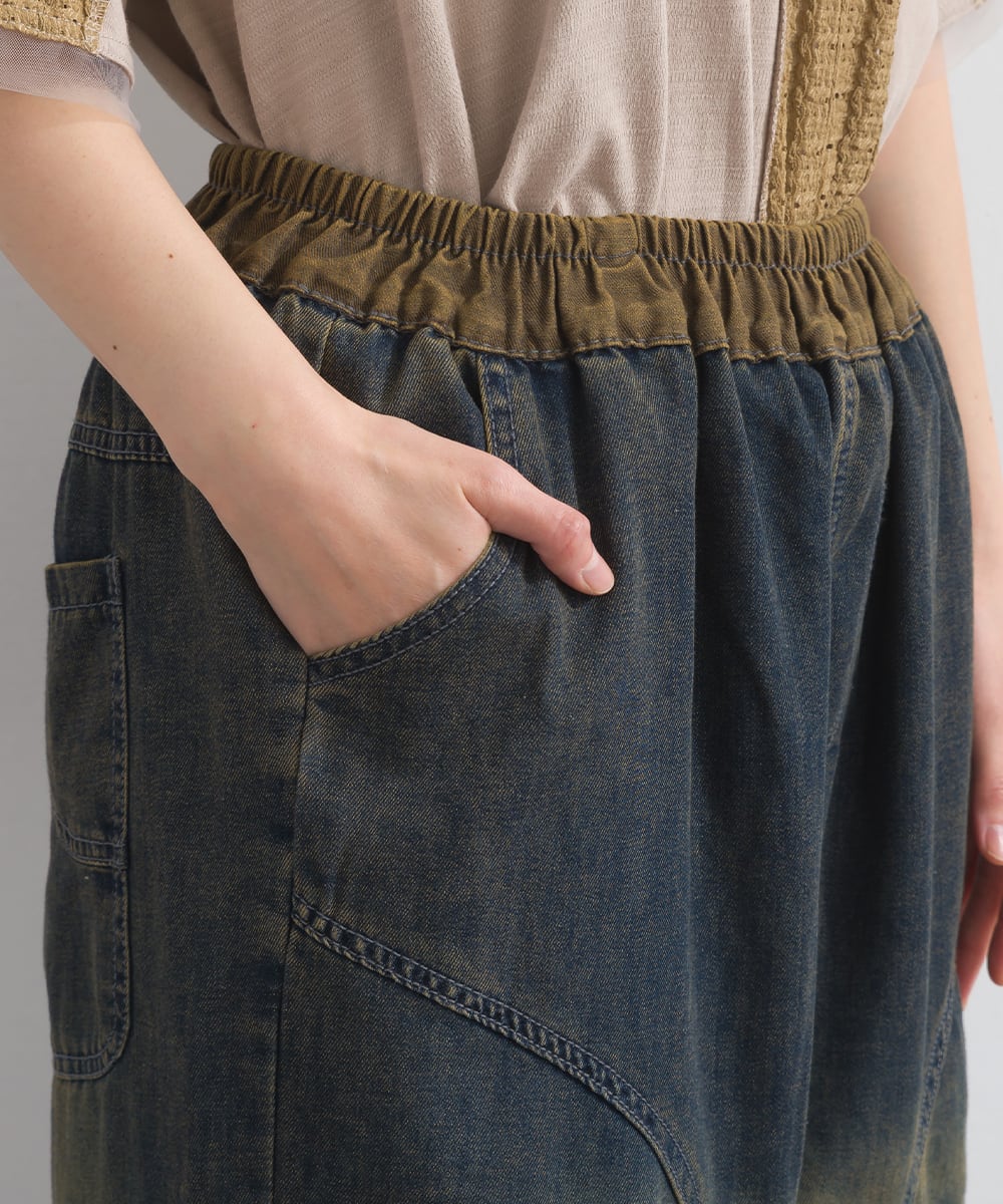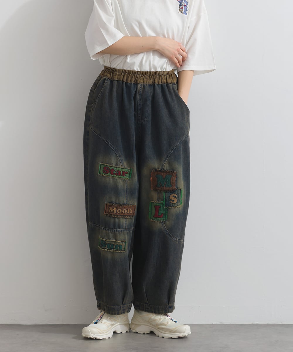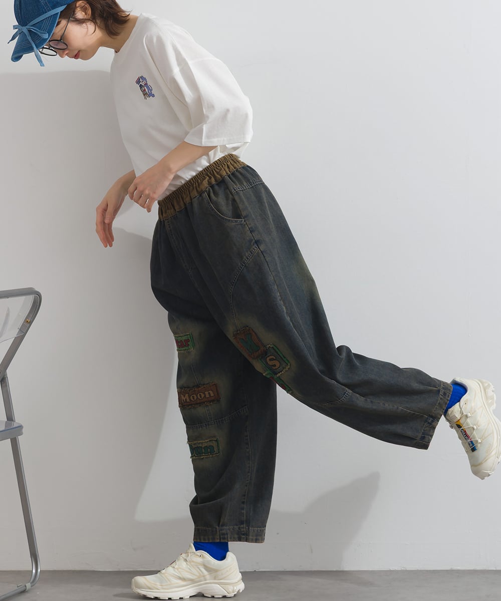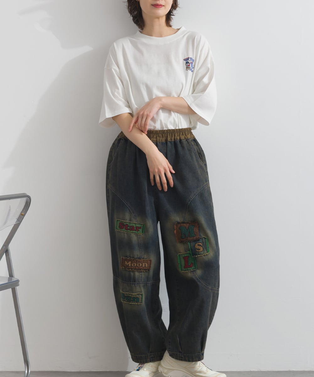 遊び心のあるデザインながら、ベースは落ち着いたデニムカラーなので大人カジュアルに取り入れやすい一本です。