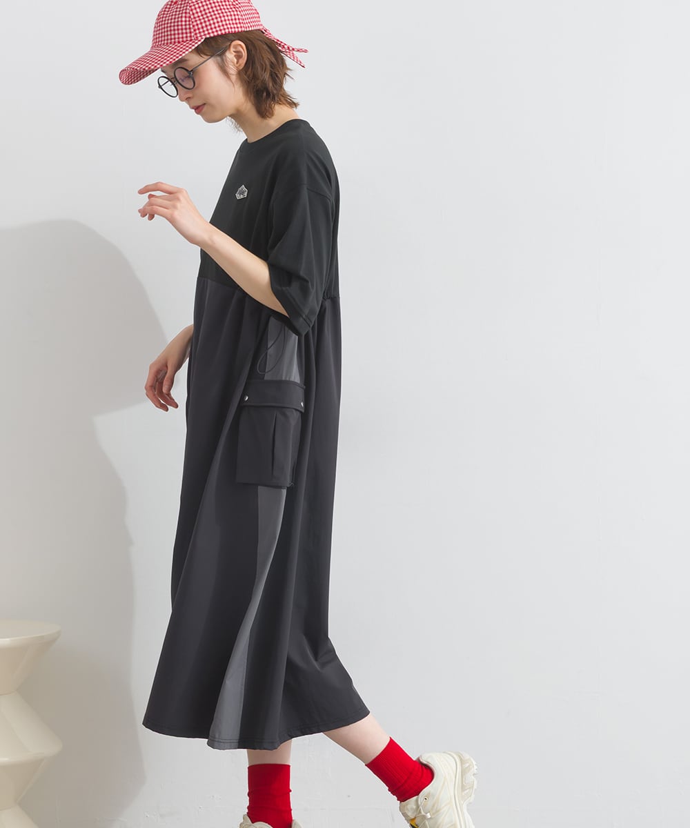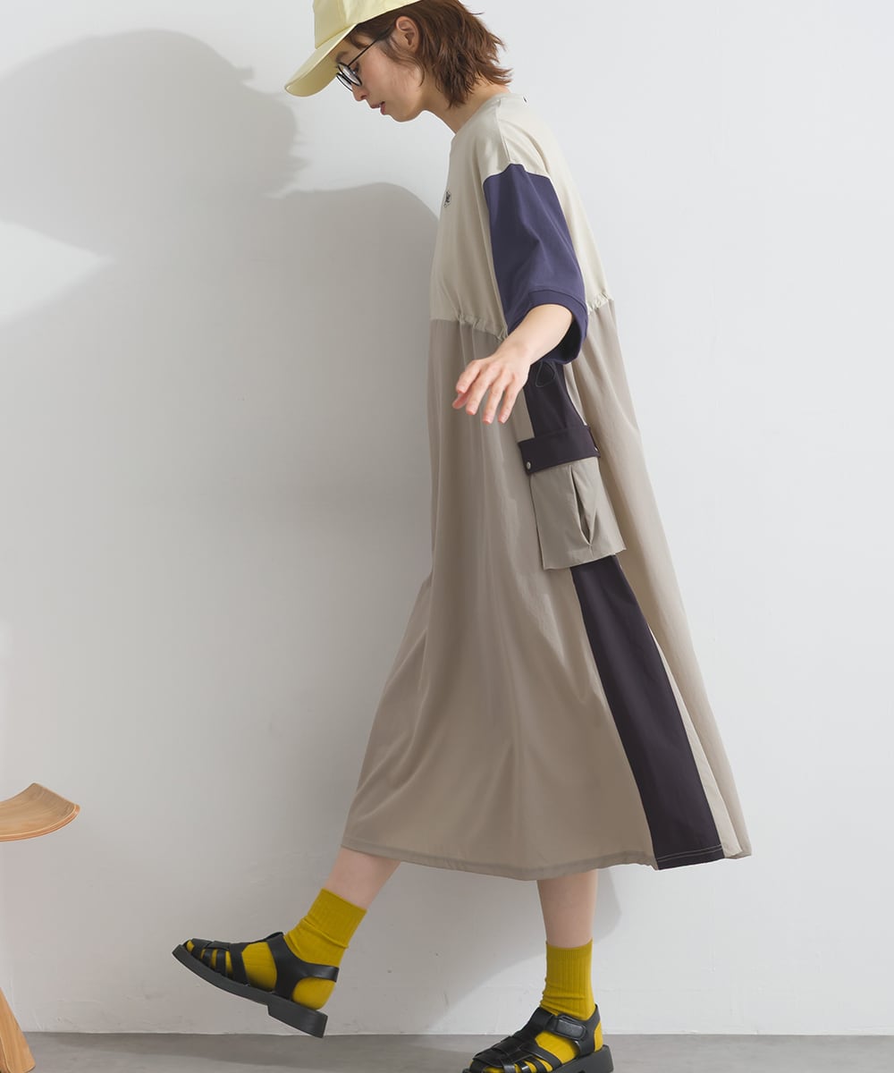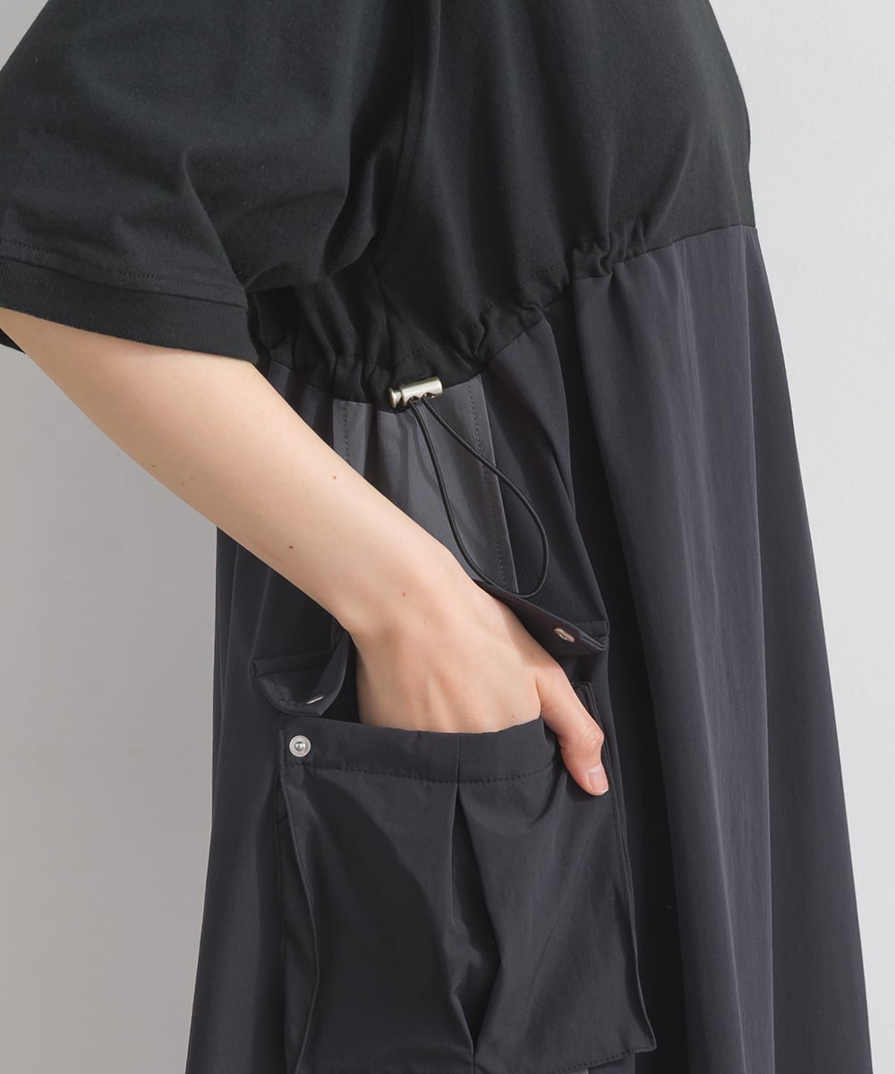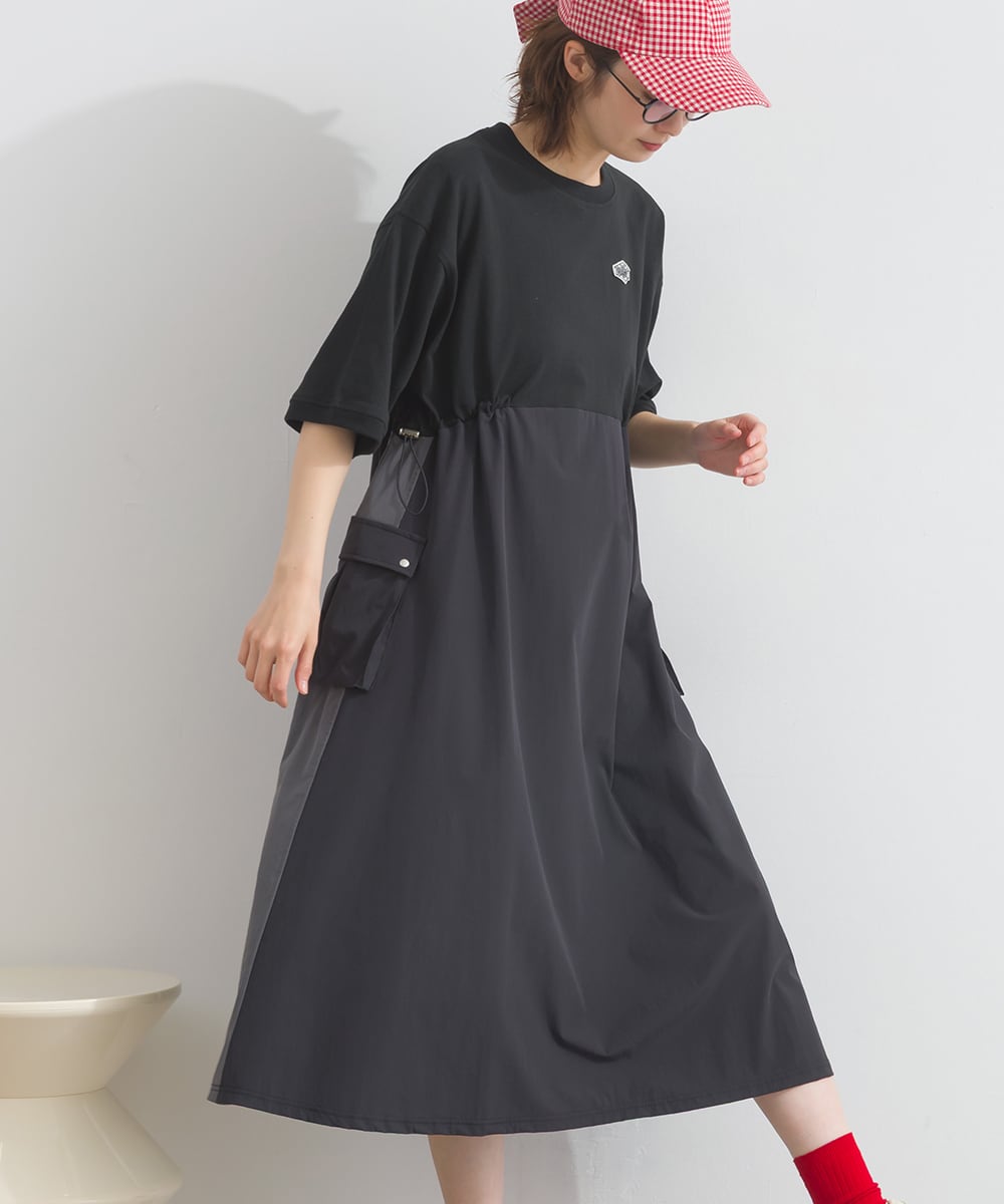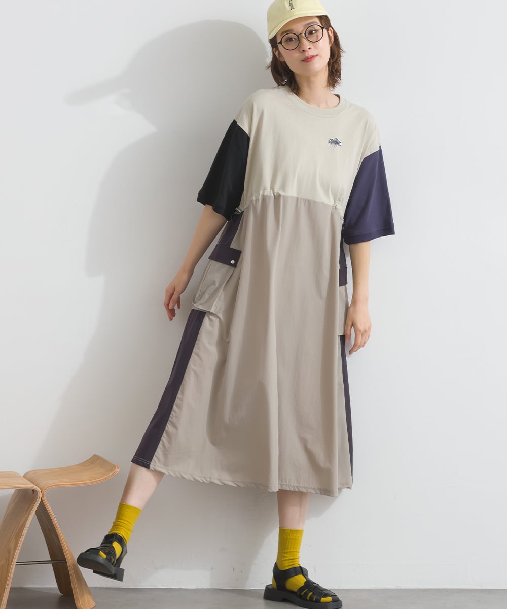ナイロン切替デザインが特徴のカーゴワンピース。