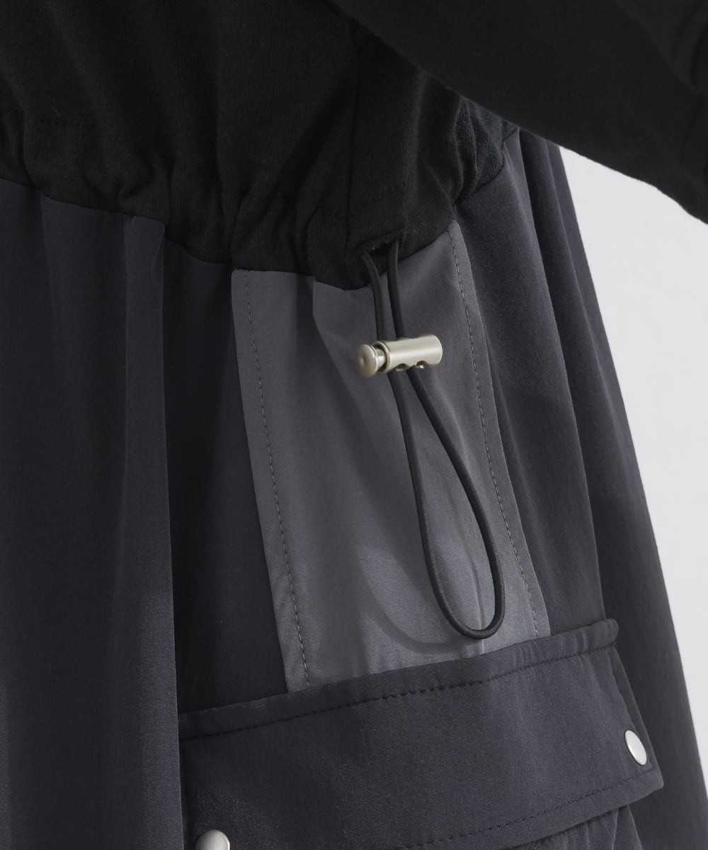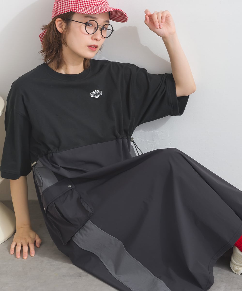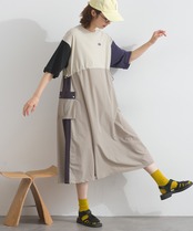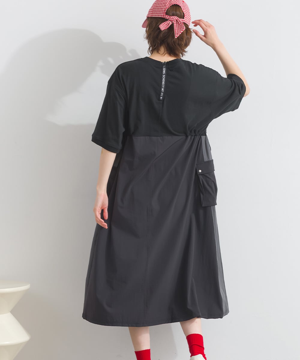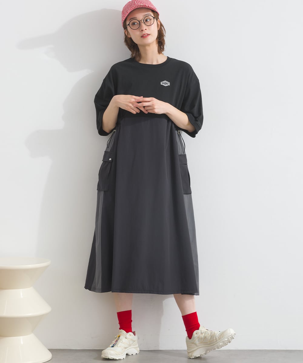 ナイロン切替デザインが特徴のカーゴワンピース。