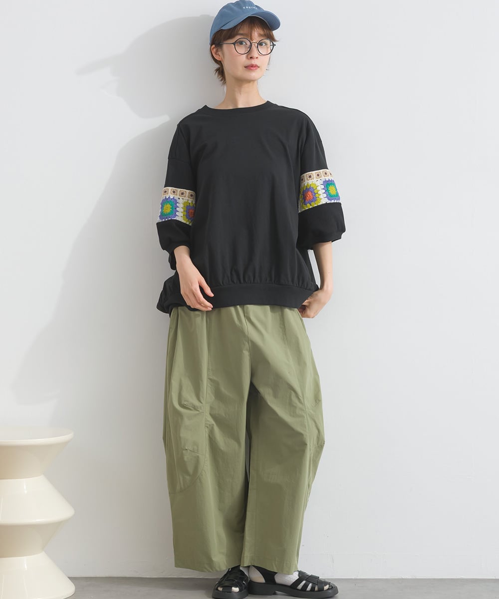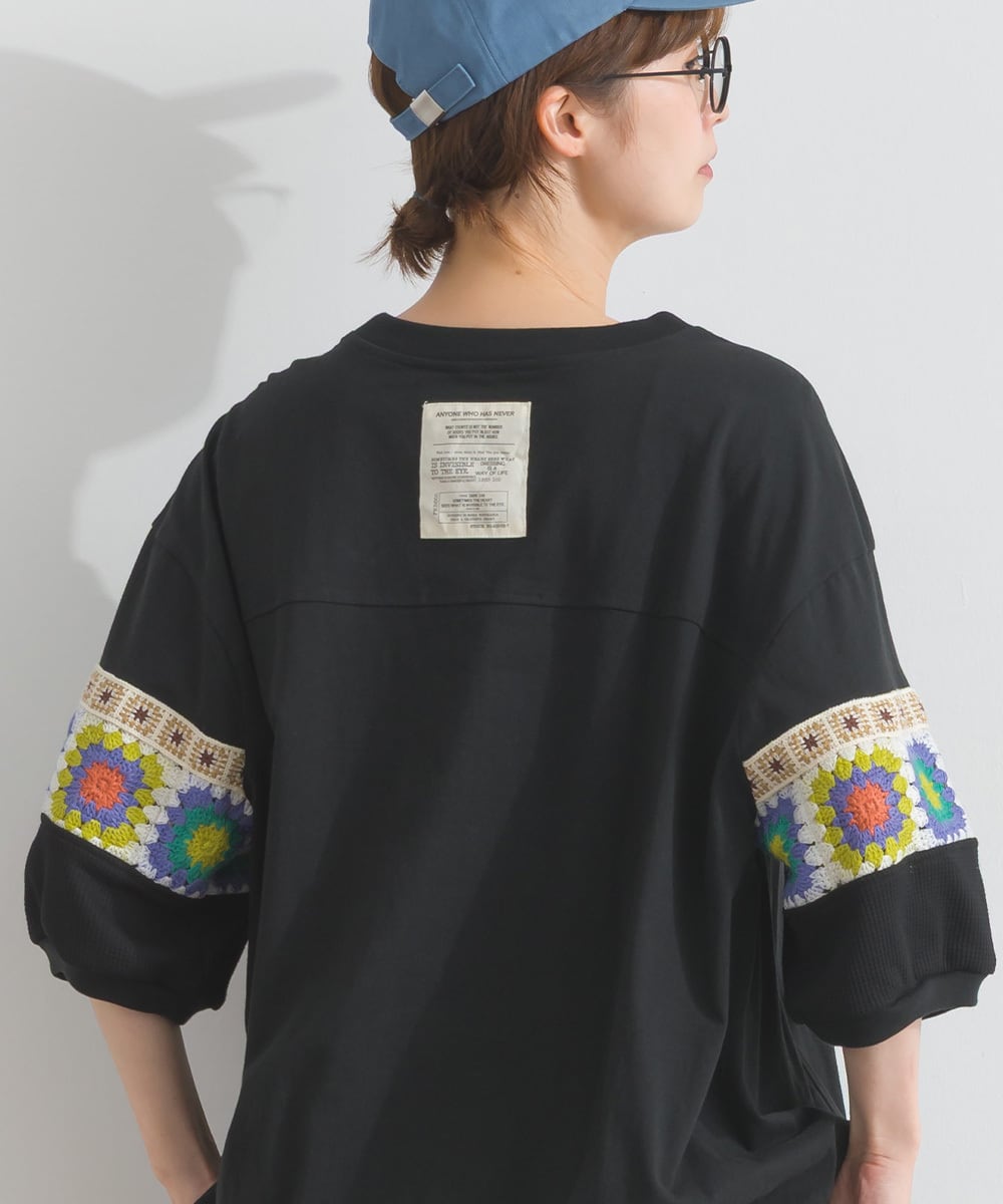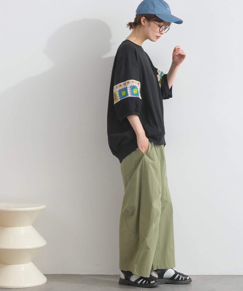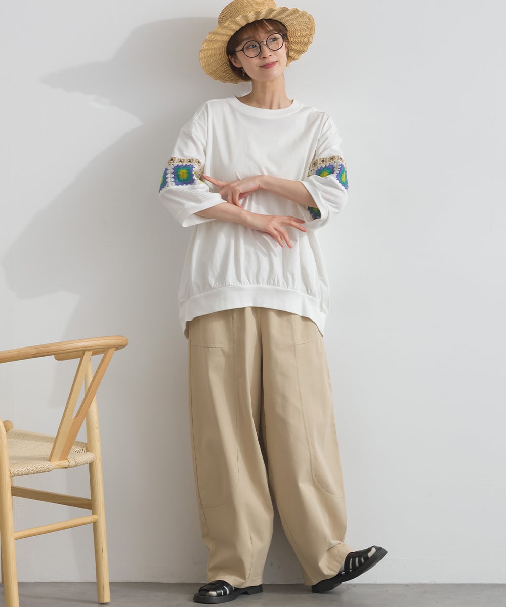 袖のクロシェモチーフデザインが印象的なカットソープルオーバー。