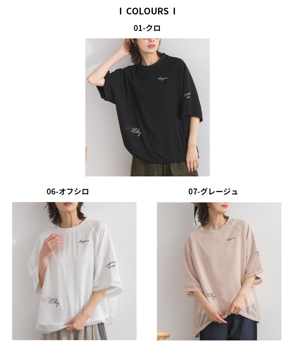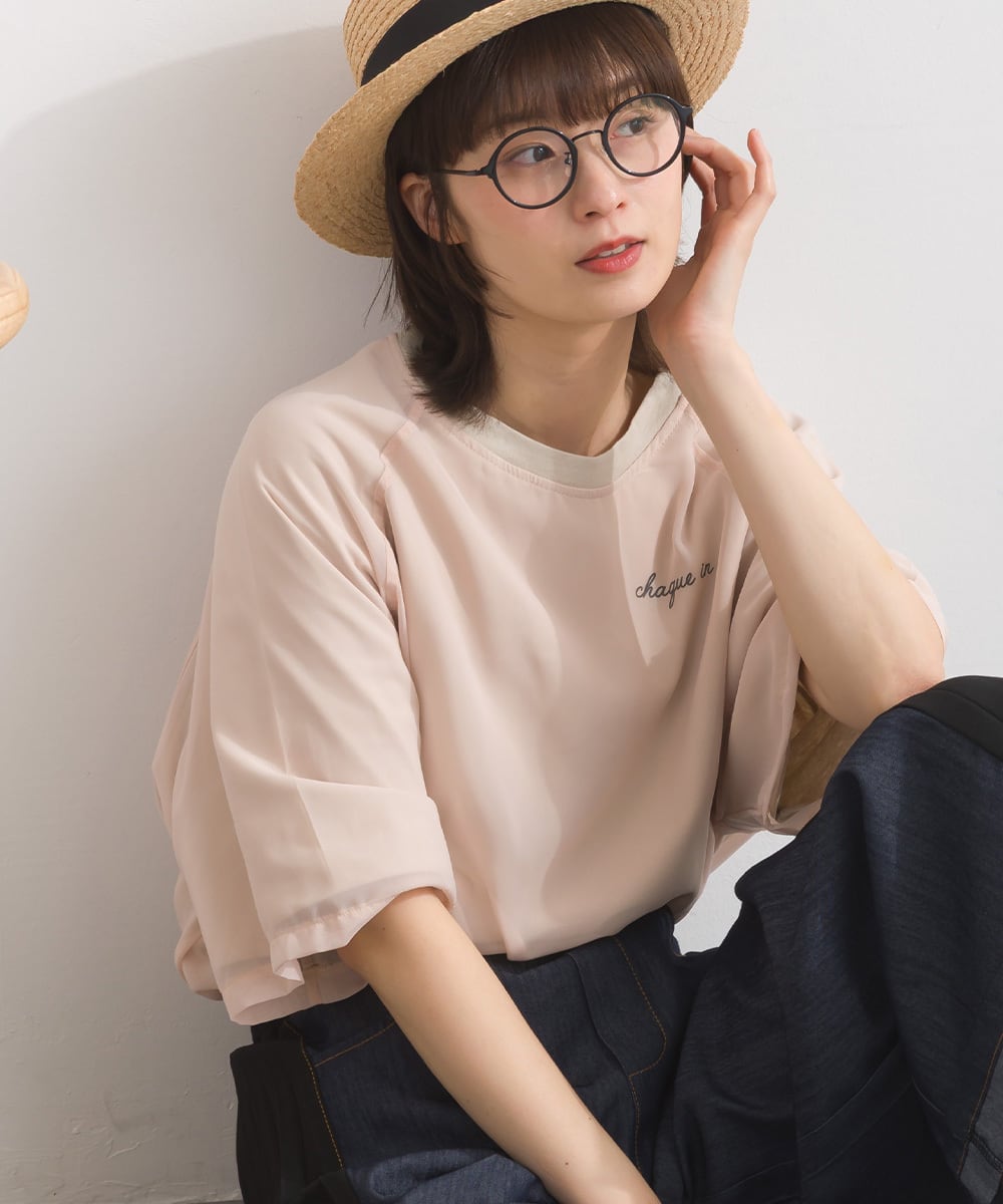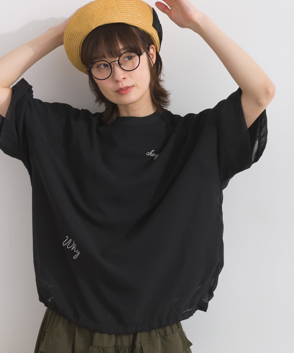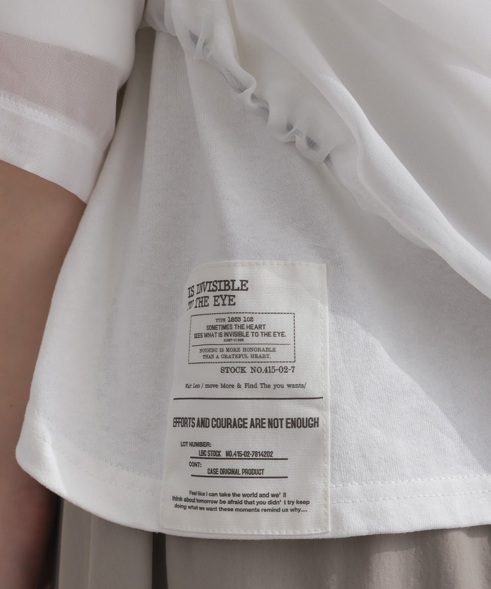 シアー素材を重ねたレイヤード風デザインのTシャツ。