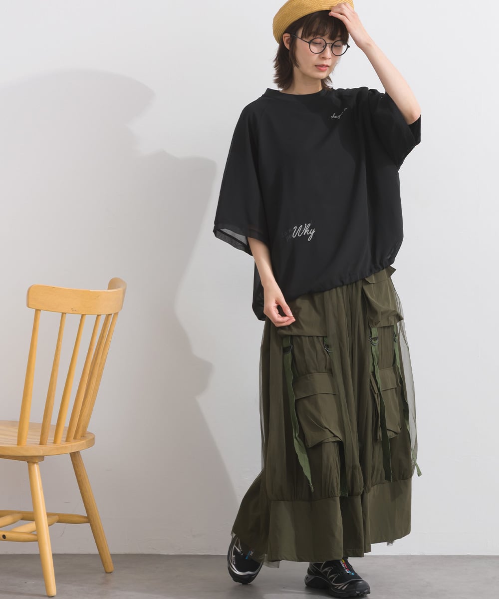 J261110 シアーレイヤードドロストプルオーバー / Sheer Layered Drawstring Pullover
