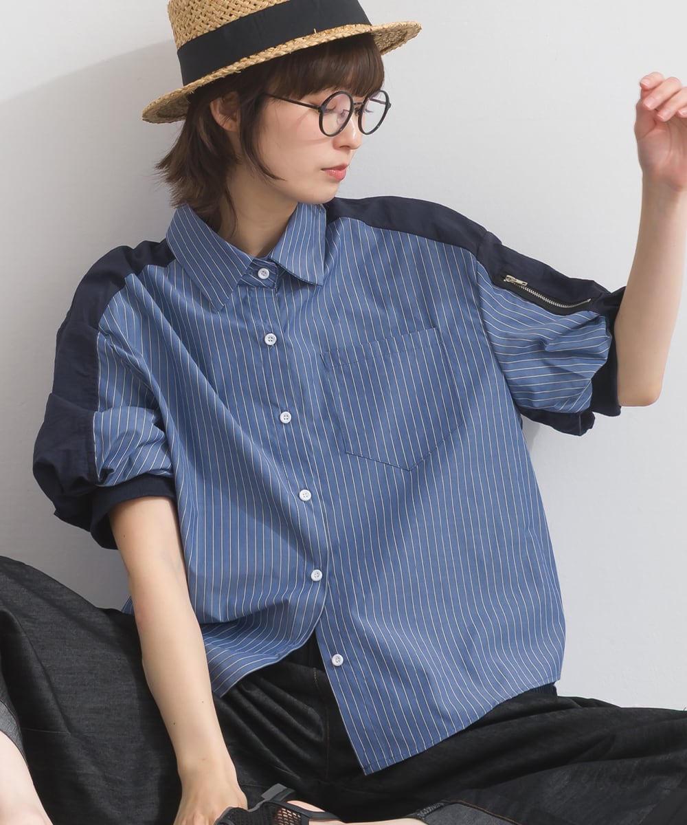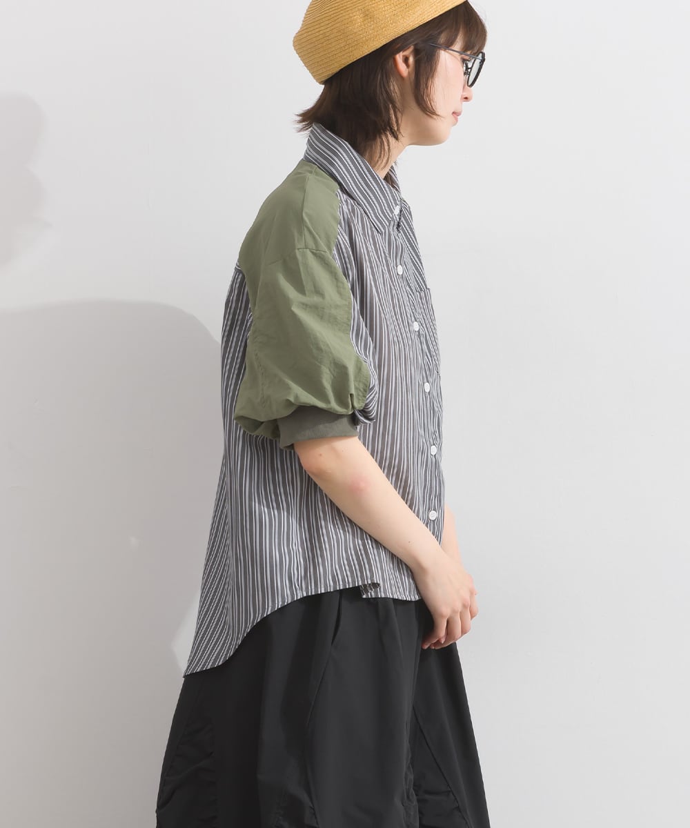 2026SS 2026春夏新作 春夏コーデ オーバーサイズ ワンマイルウエア iriey アイリー カジュアル ナチュラル ミセス ゆったり 体型カバー ゆったりシルエット ワンマイルウェア 大人カジュアル 人気 ストライプブラウス 半袖シャツ 配色ブラウス レディースシャツ