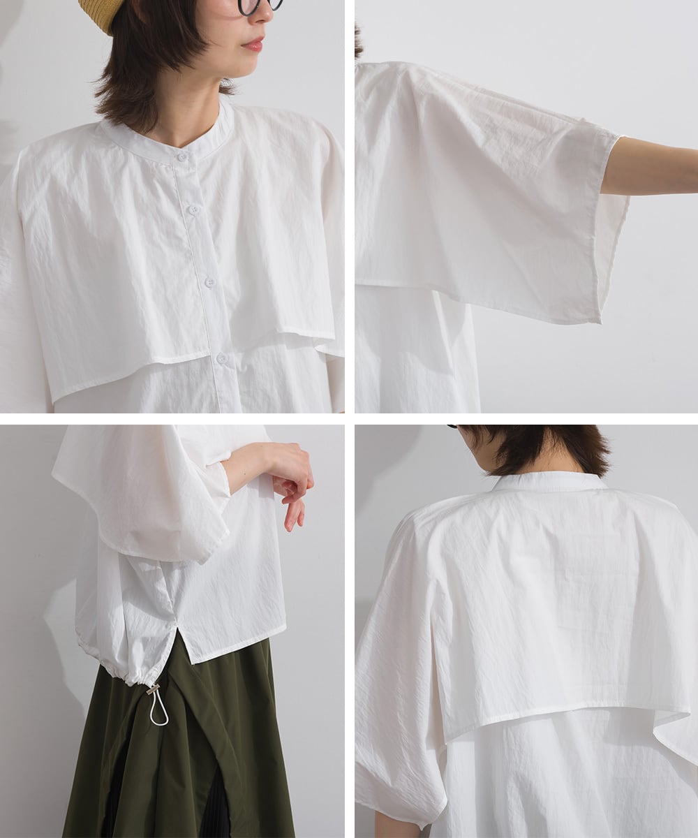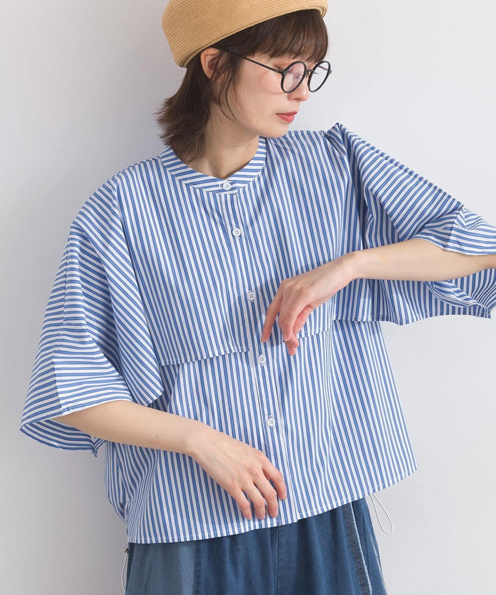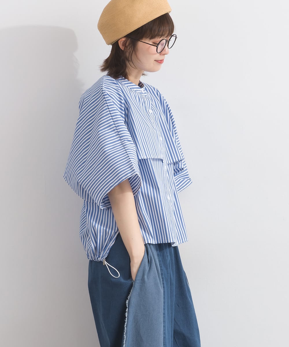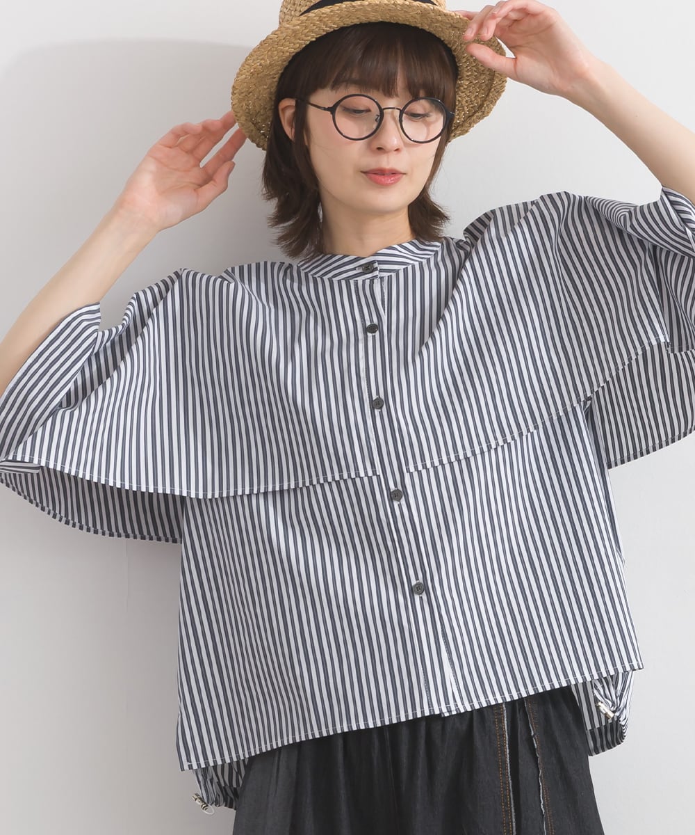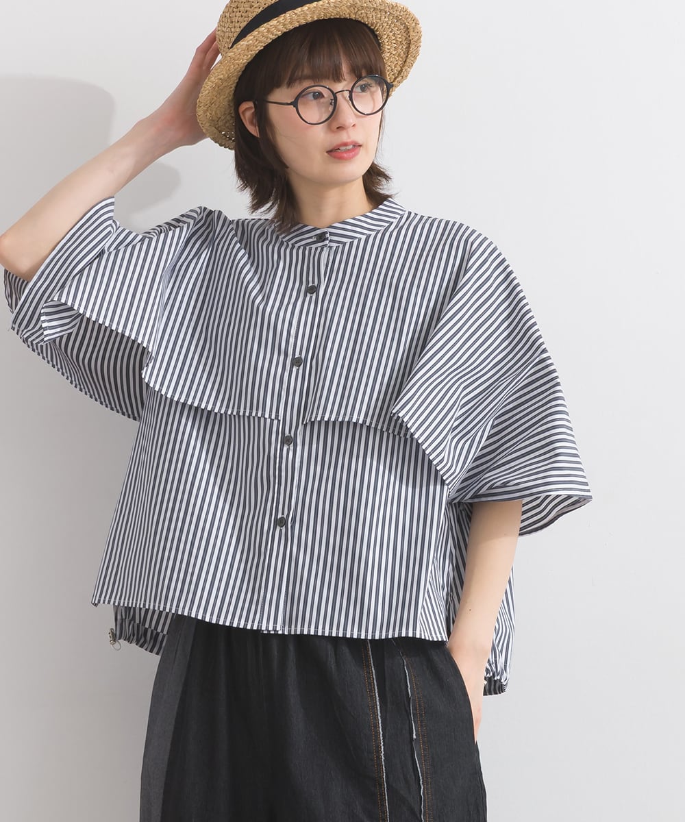 D262113 ストライプケープ風レイヤードブラウス / Stripe Cape Layered Blouse