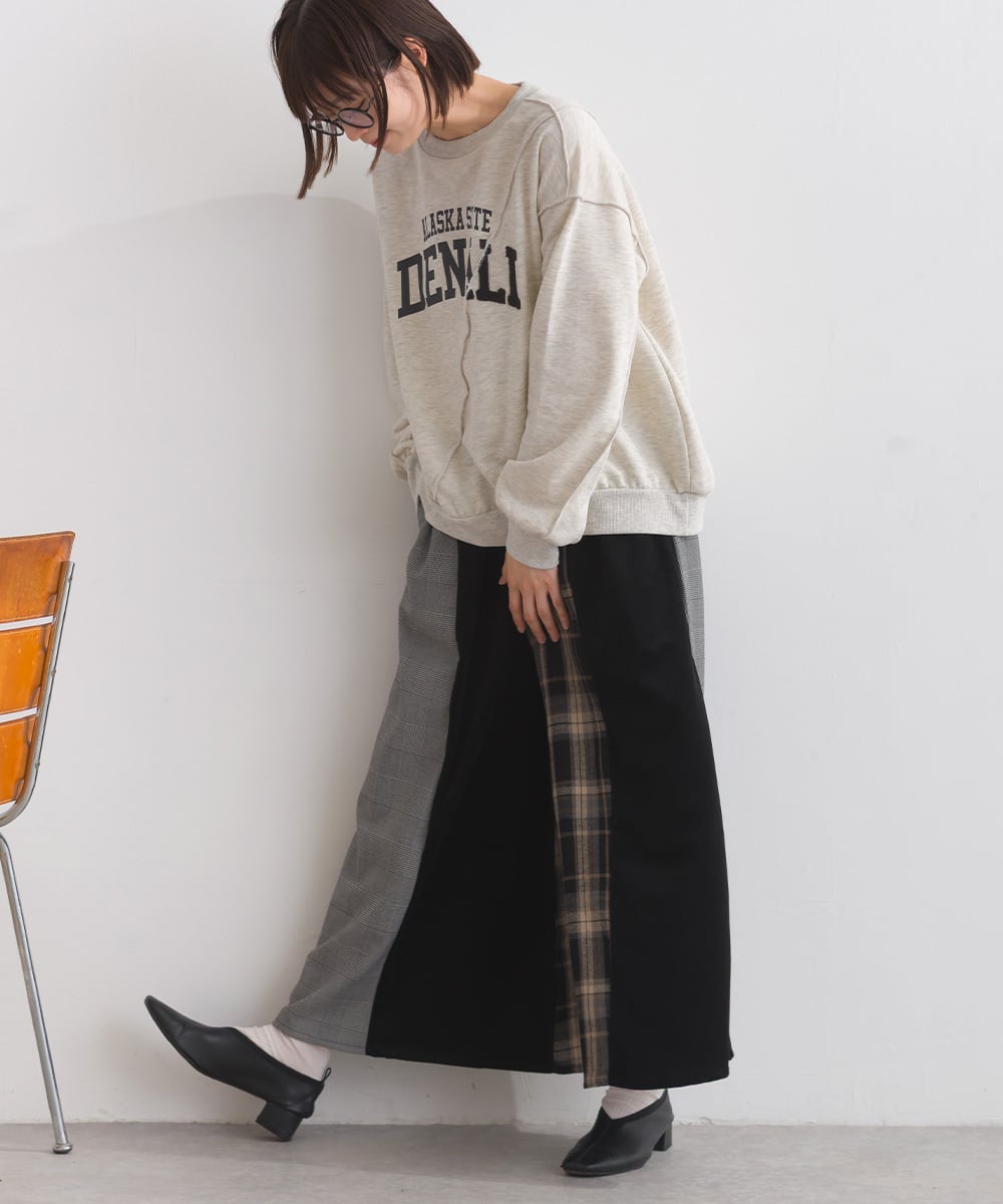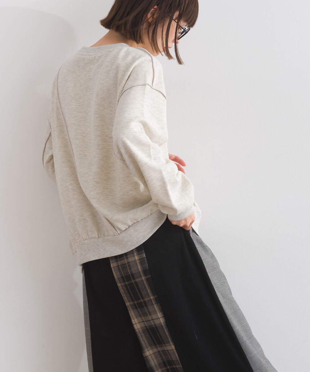 2024秋冬新作 2024AW オーバーサイズ ワンマイルウエア ミセス ゆったり iriey アイリー ナチュラル カジュアル カットソー リメイク リメイクスウェット リメイクスエット 切替スウェット メロウ切替 メロウ加工 メロウロック スウェット スエット トレーナー メンズライク 綿 コットン 人気