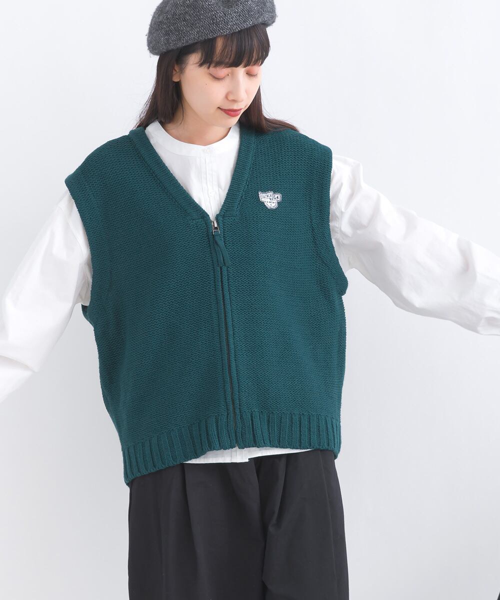 フロントジップのニットベストがお目見え。
