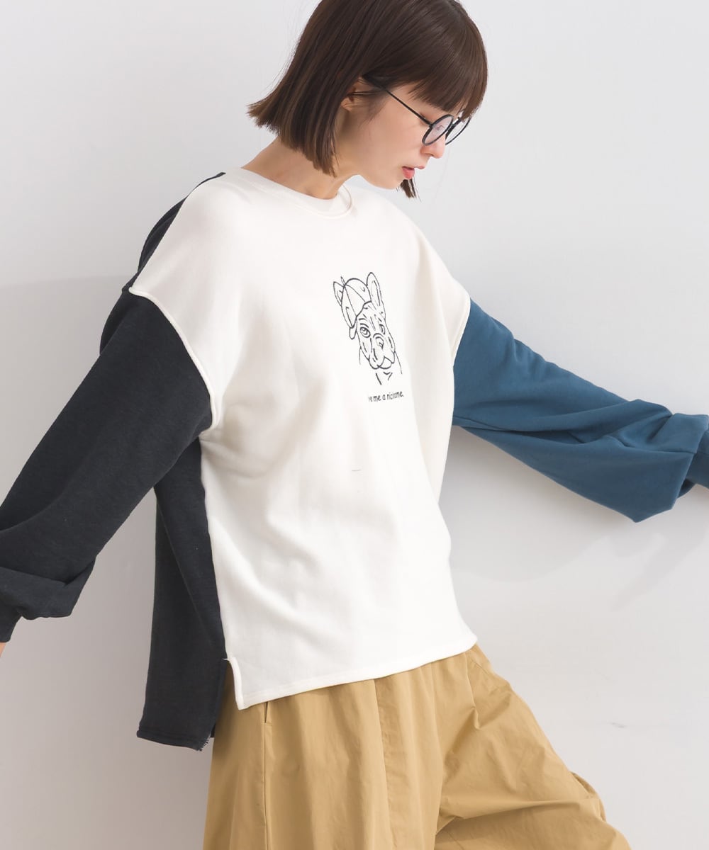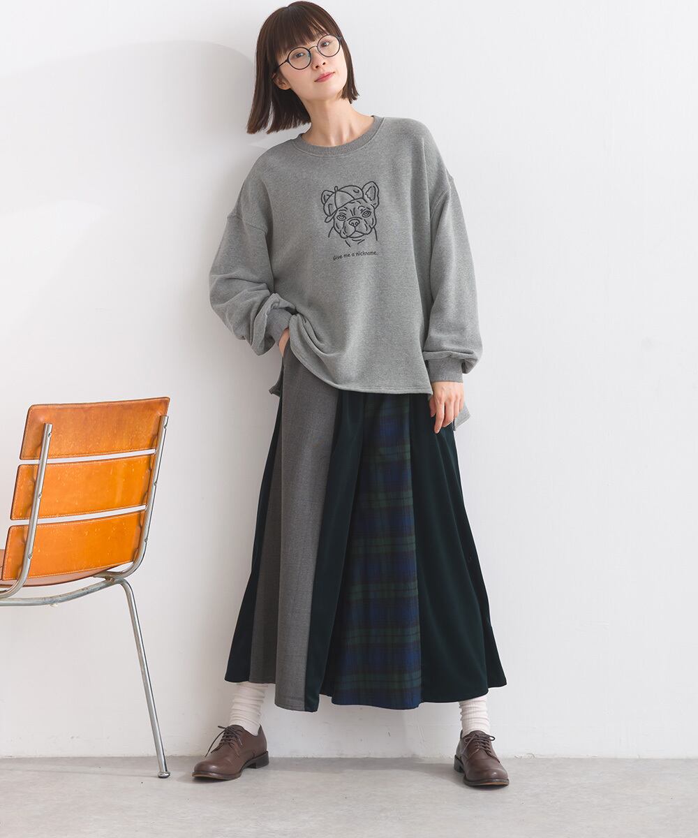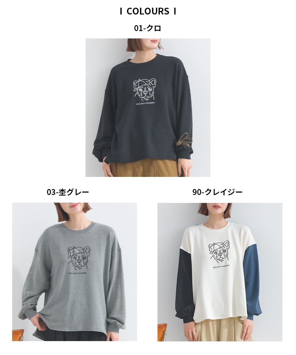 2024秋冬新作 2024AW オーバーサイズ ワンマイルウエア ミセス ゆったり iriey アイリー ナチュラル カジュアル 体型カバートップス イラストスウェット ロゴスウェット 単色刺繍 刺繍プルオーバー フレンチブルドッグ 犬 DOG スエット プルオーバー カットソー デザインプルオーバー デザインスウェット メンズライク 綿 コットン 人気