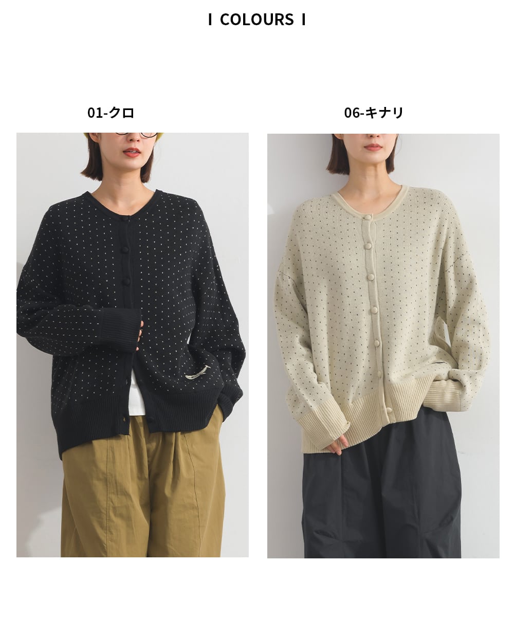 オーバーサイズ ワンマイルウエア ミセス ゆったり merituuli メリトゥーリ スタンダード フレンチ 上質 体型カバー カーデ カーディガン ニットカーデ ドット柄 ドットカーデ 人気