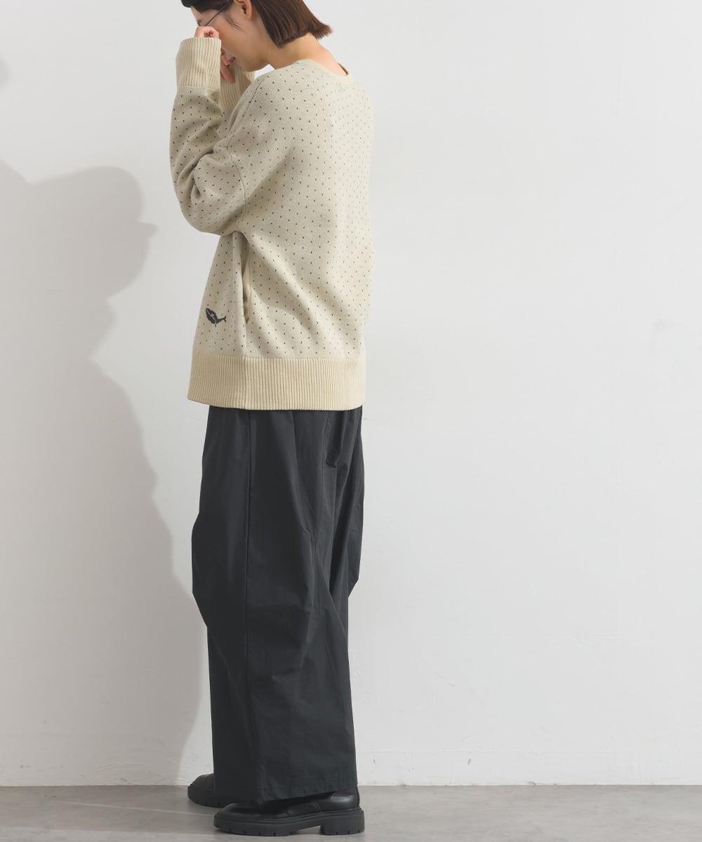 クジラ柄Vネックカーディガン P44015