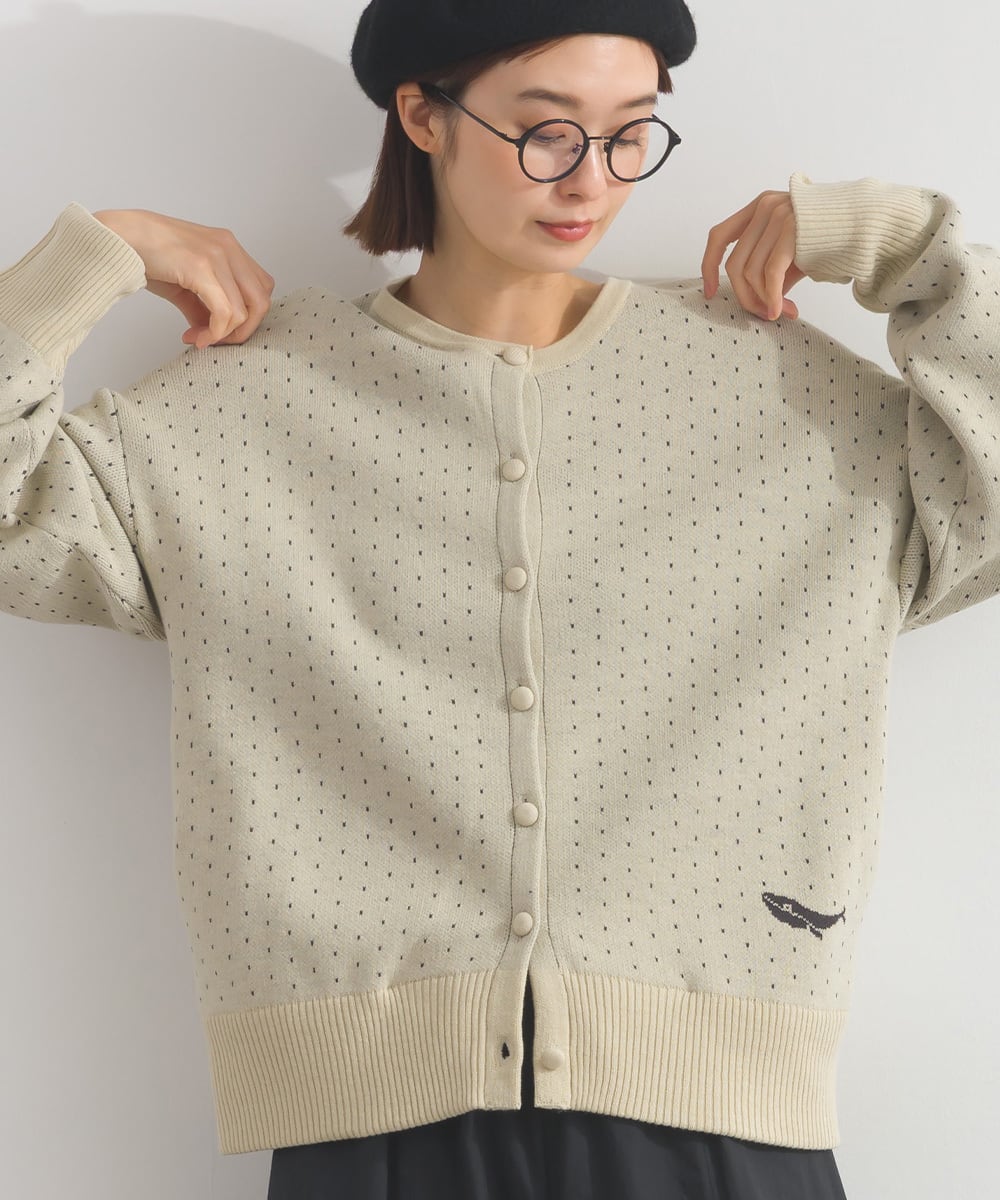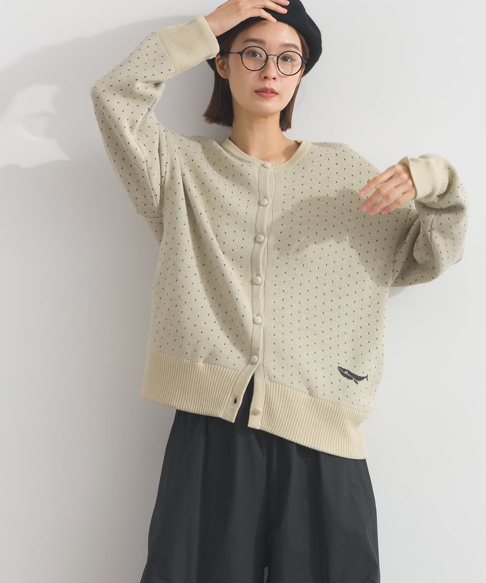 ドット柄クルーネックカーディガン P44016