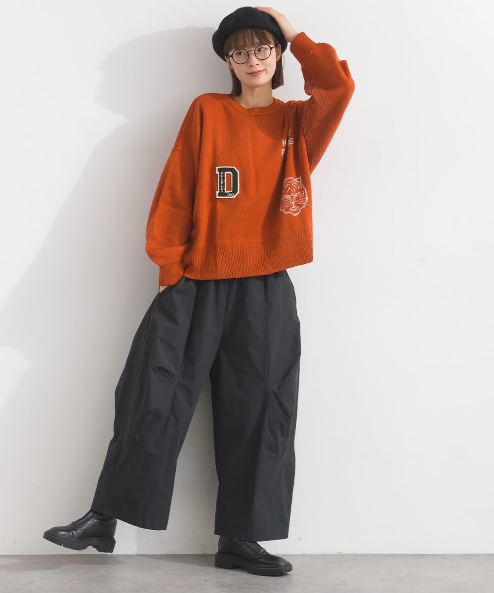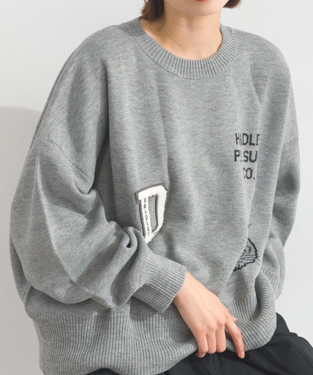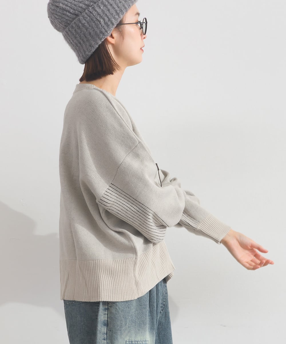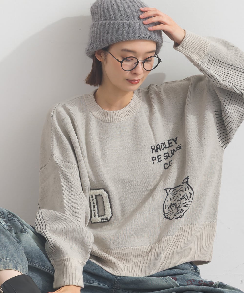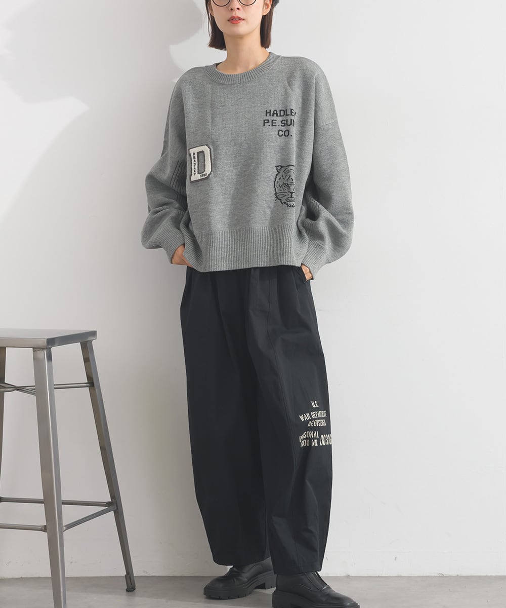 オーバーサイズ ワンマイルウエア iriey アイリー ナチュラル カジュアル 体型カバー セーター ニットプルオーバー ジャガード ジャカード ロゴニット ロゴアレンジニット ワッペンニット アニマルニット 動物ニット アニマル柄 動物柄 ニット 人気