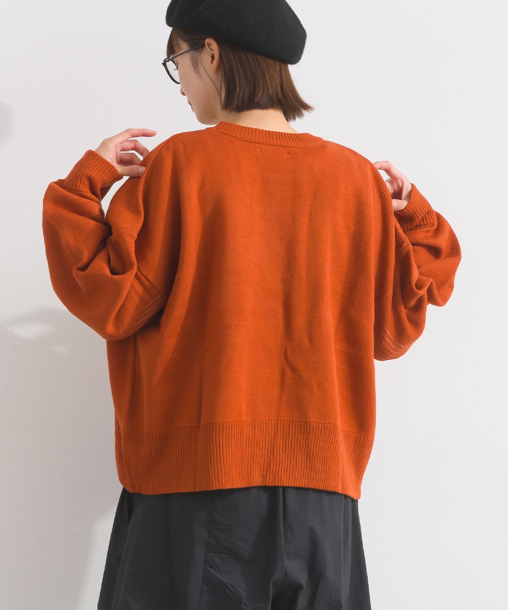 アクリル素材を使用した12ゲージのニットは、軽くて柔らかな着心地を実現。