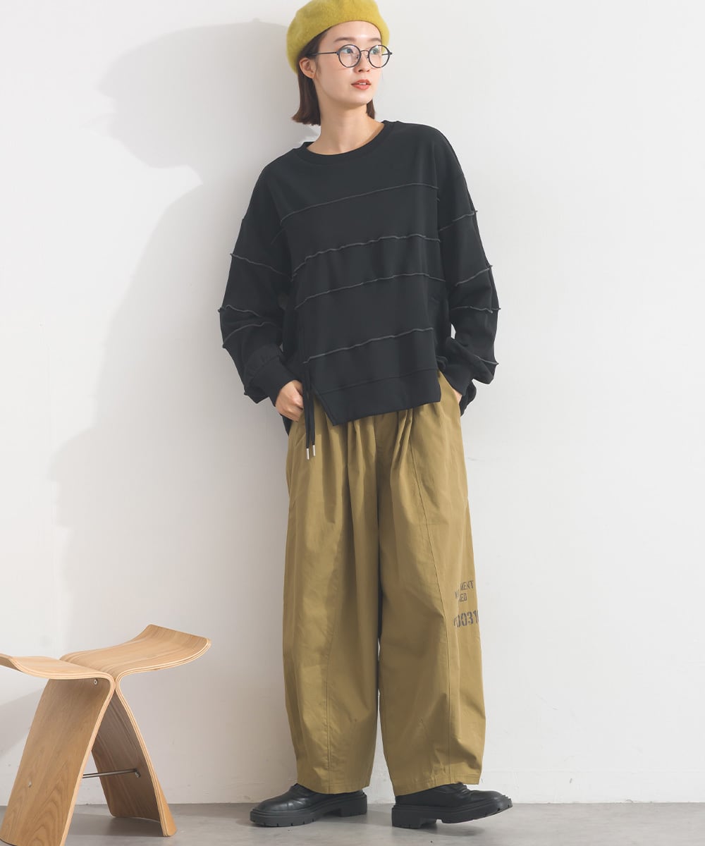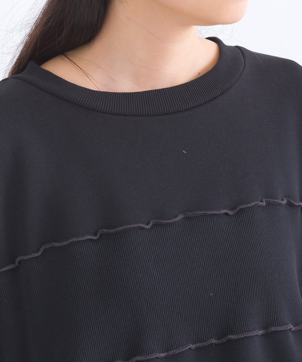オーバーサイズ ワンマイルウエア iriey アイリー カジュアル ナチュラル ミセス ゆったり 体型カバー 裏毛 リブ リブ切替 メロウ メロウ使い 異素材使いプルオーバー コットン 綿 人気