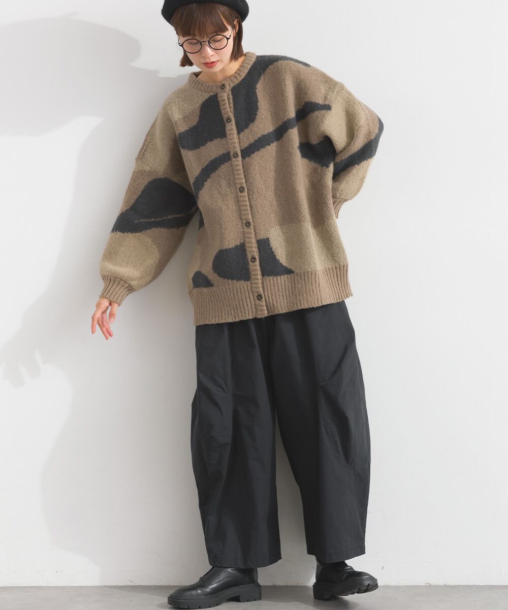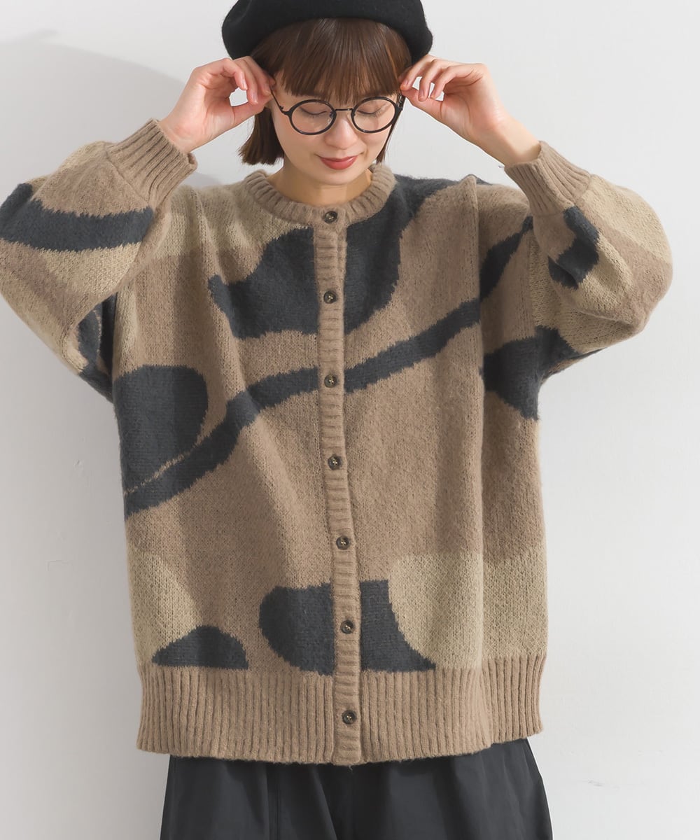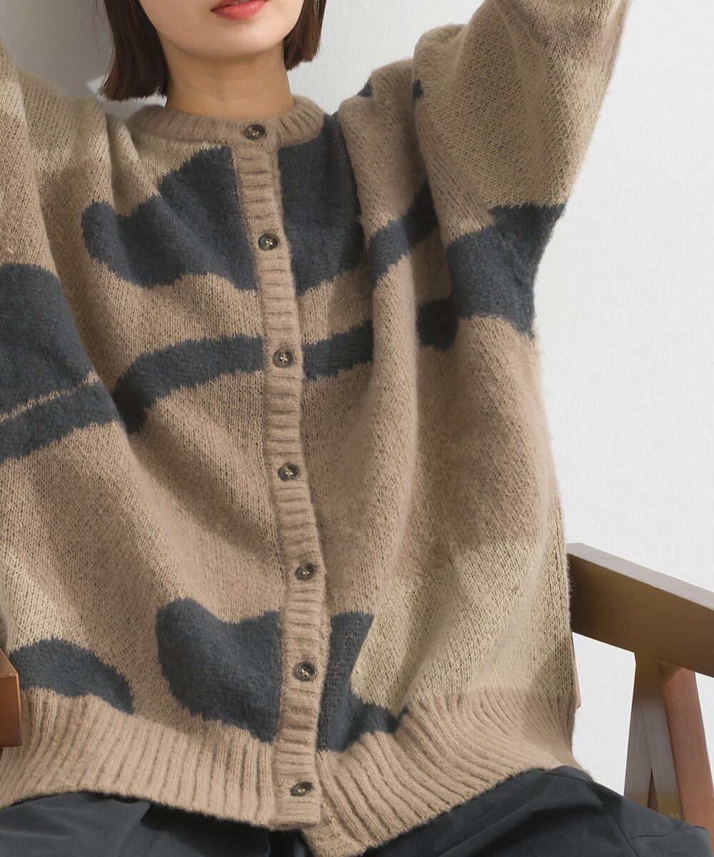2024秋冬新作 2024AW オーバーサイズ ワンマイルウエア iriey アイリー ナチュラル カジュアル 体型カバー ニットカーデ ニットカーディガン カーデ カーディガン シャギーニット 総柄ニット ニット 人気
