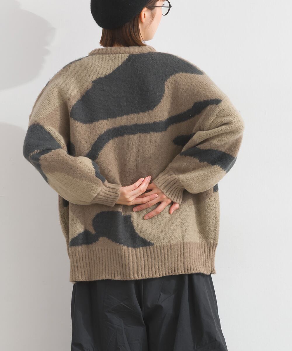 インパクトのある総柄デザインとふんわりとしたシャギーニットの質感が魅力の総柄シャギーニットカーディガン。